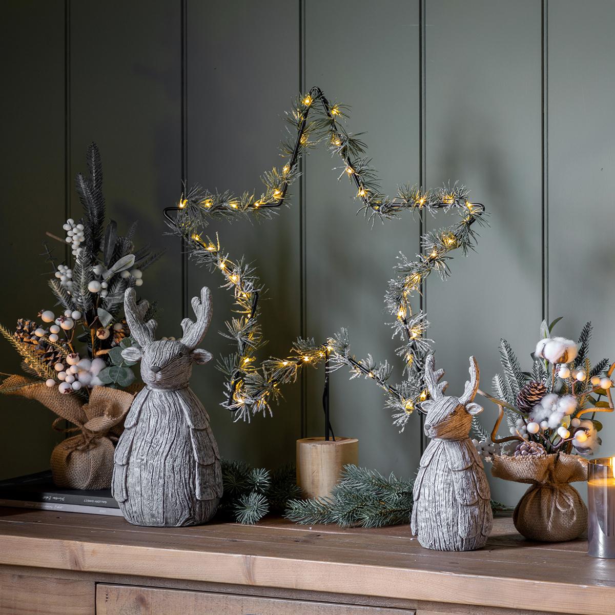 I love this reindeer sculpture for its charming rustic appeal-it’s a versatile piece that adds a cosy, woodland touch to both traditional and modern interiors. It works particularly well in neutral, earthy colour schemes or paired with natural materials like wood, wool, or linen. For styling tips, consider placing it on a sideboard, console, or within a shelf arrangement to anchor a festive vignette or bring a seasonal vibe into year-round decor. Because of its understated palette, it’s adaptable for winter-themed displays or more casual, everyday settings, making it a practical and stylish addition to a variety of interiors.
