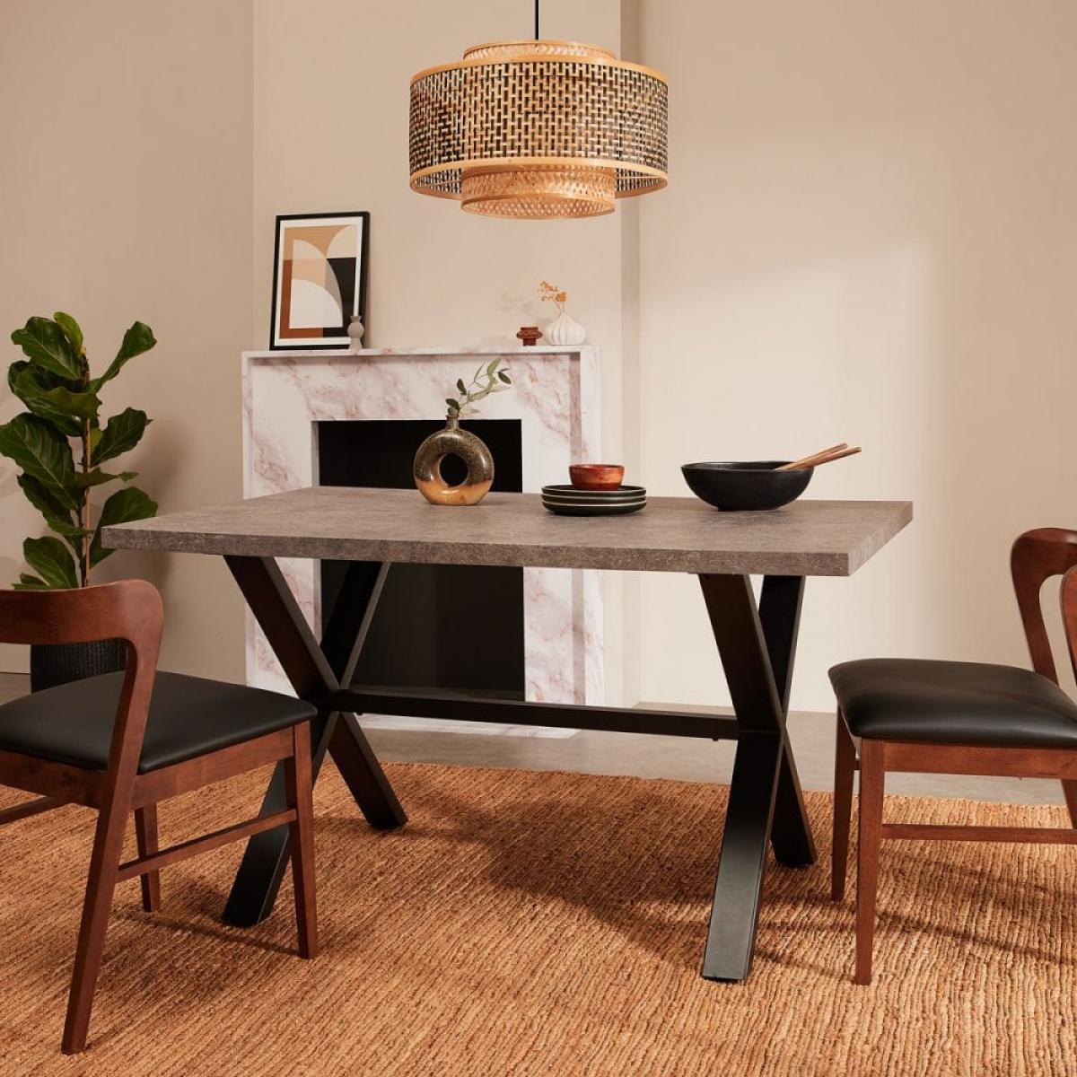 The Logan 4 seater is a practical choice for a contemporary or industrial-inspired dining space. I love its faux concrete top as it adds texture and a modern edge without the weight or coldness of real concrete. It works well in open-plan kitchens or urban apartments, especially when paired with metallic or timber finishes for contrast. Styling tips include balancing the hard surface with soft chairs, like upholstered or fabric options, to introduce comfort. For a layered look, add a textured runner or place mats and simple centrepieces like candles or a small vase. Keep the colouring neutral or muted to highlight the table’s sleek, minimalist design, making it a functional yet stylish focal point.