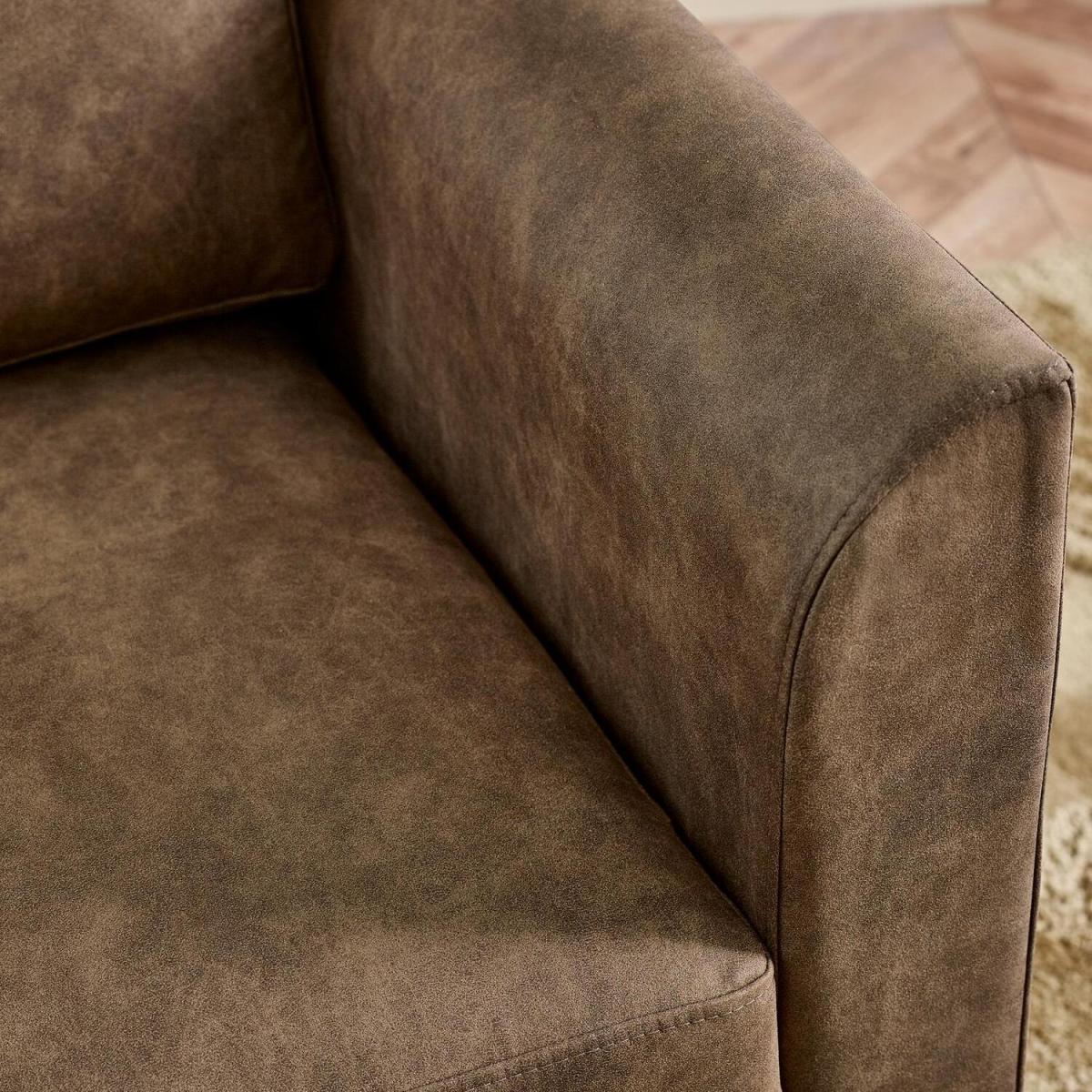 Our Logan 3 seat sofa in brown faux leather is going to be the perfect spot to relax in your living room. An effortlessly simple yet bang-on-trend modern upholstered fabric sofa, the design is minimalist and boxy with straight lines, except for the arms which slope down into the seat. Featuring 2 large back cushions with removeable covers and stylish black wooden tapered legs to give it a chic look. Constructed from a sturdy wooden frame, with foam filling and upholstered in stunning soft brown PU leather, the Logan is built to last and look great while doing it. Matching 2 seater and armchair also available, and offered in other coloursfabrics, too. Furniturebox sofa firmness rating - 45 medium-firm - this sofa is quite firm, designed to not leave a bum-print.