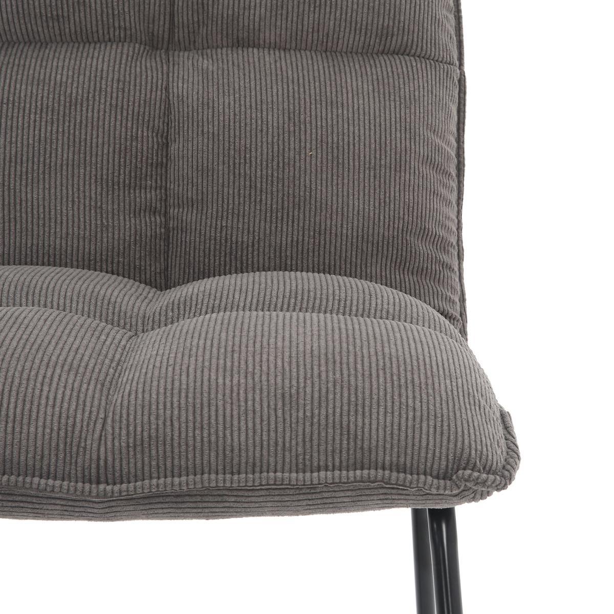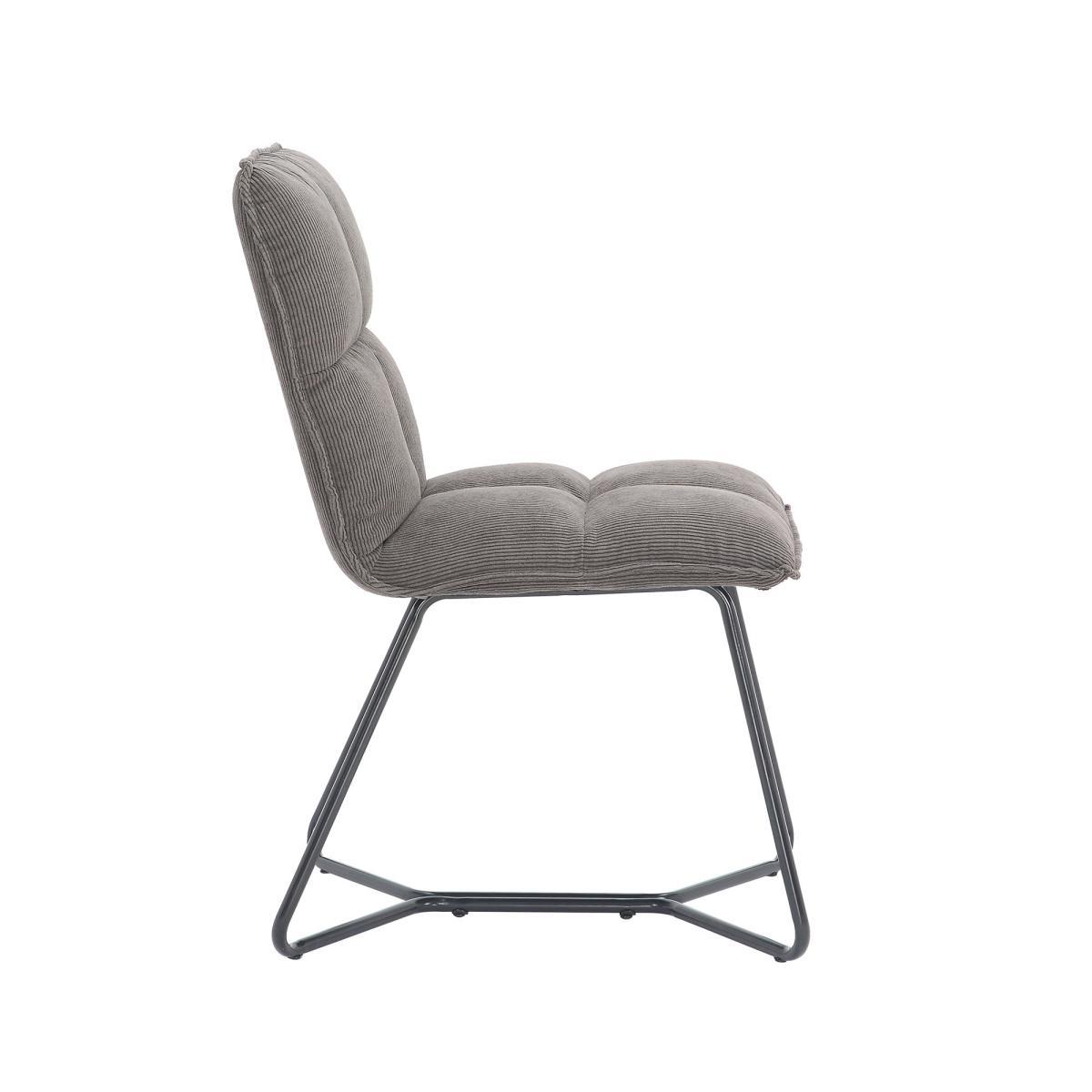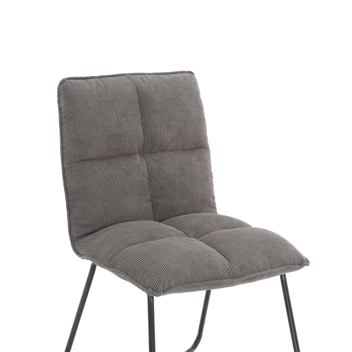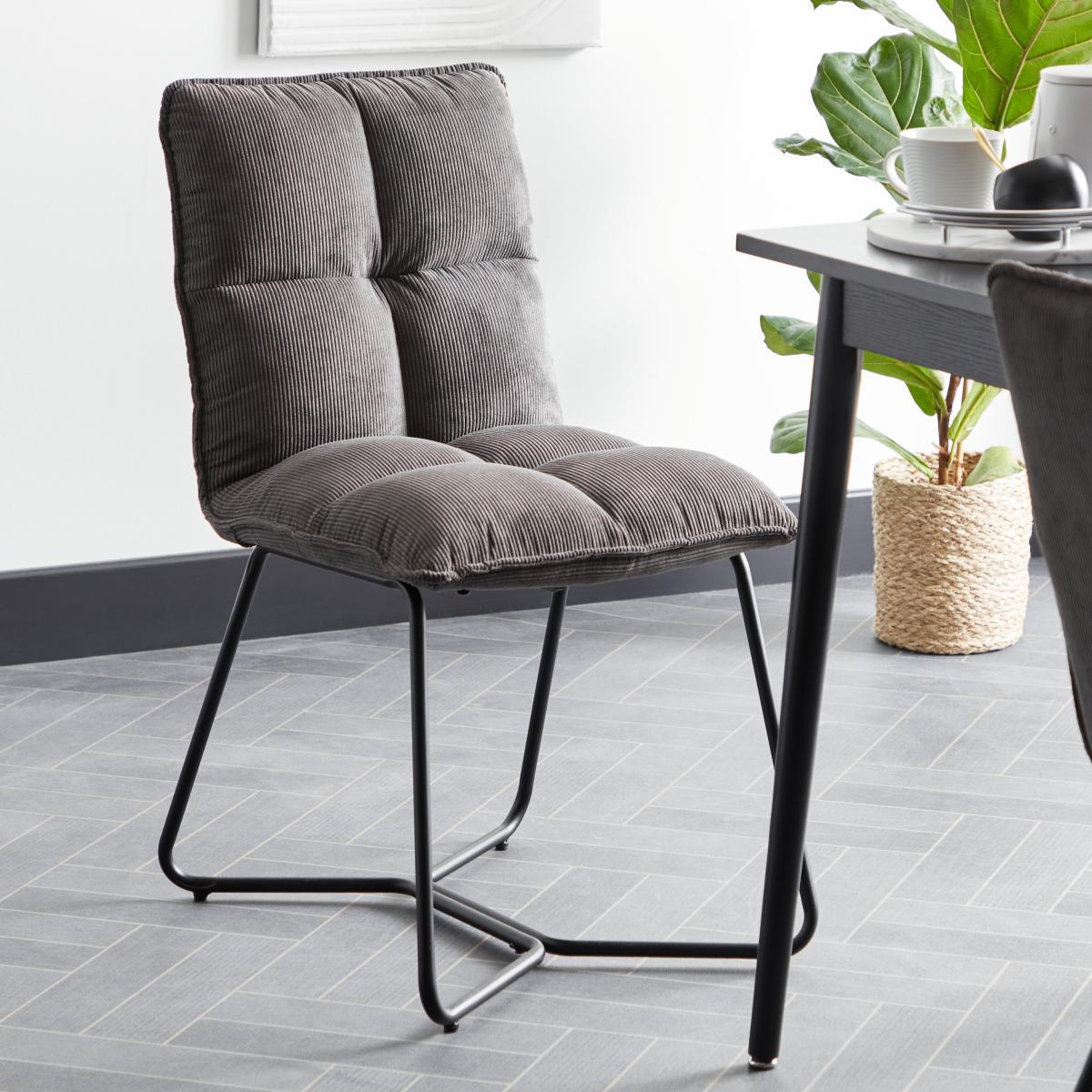 This contemporary style Logan Charcoal Cord Dining Chair is a great and easy way to effortlessly elevate the look of your dining area while also having comfortable seating. The Logan dining chair has been upholstered in a trendy, soft corduroy fabric that features slight tufted detailing for a cosy, inviting feel. With spacious seating and sleek metal legs for extra sturdiness, this chair is bound to be a favourite in the home.