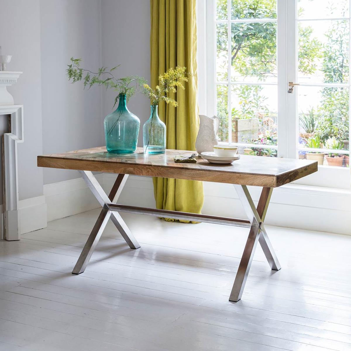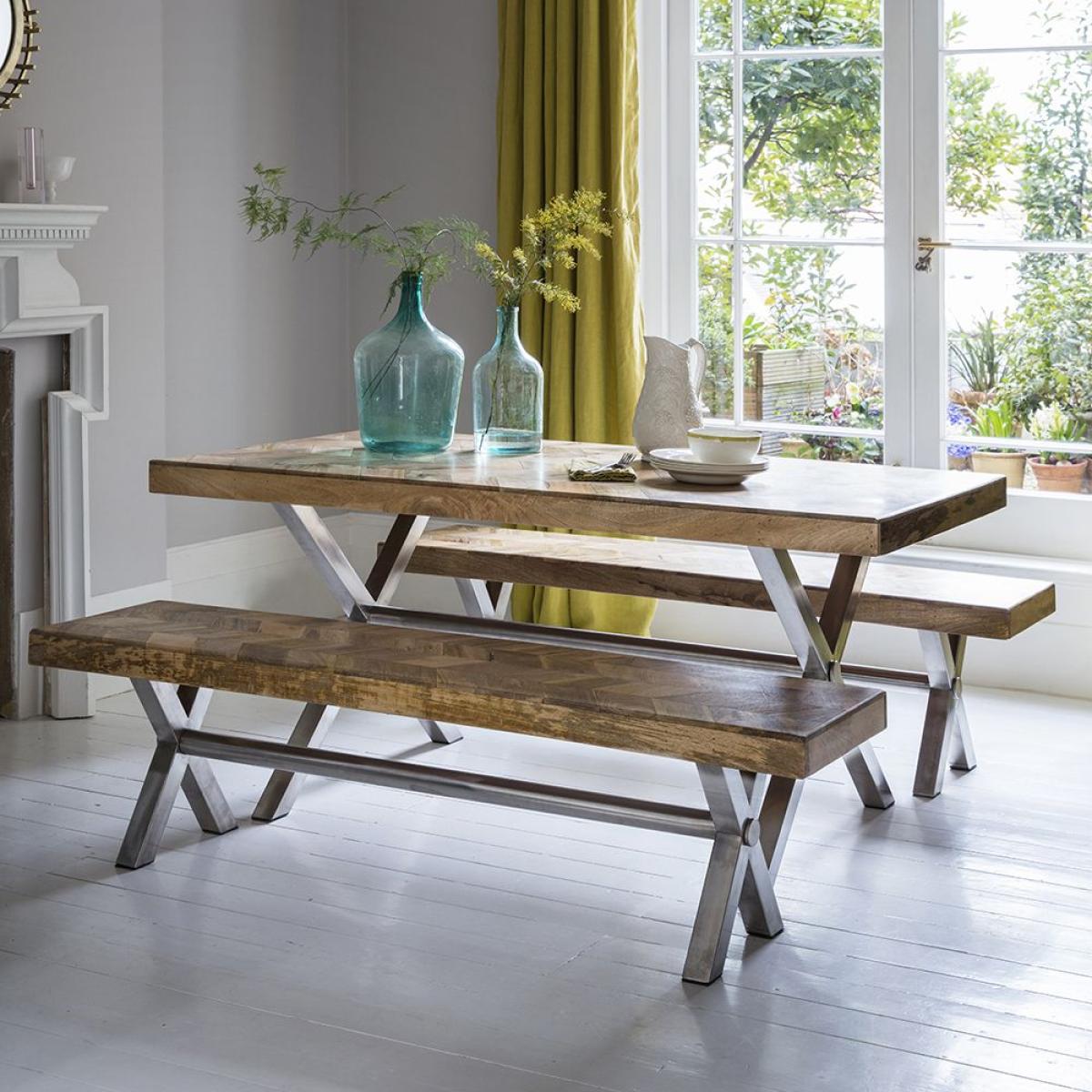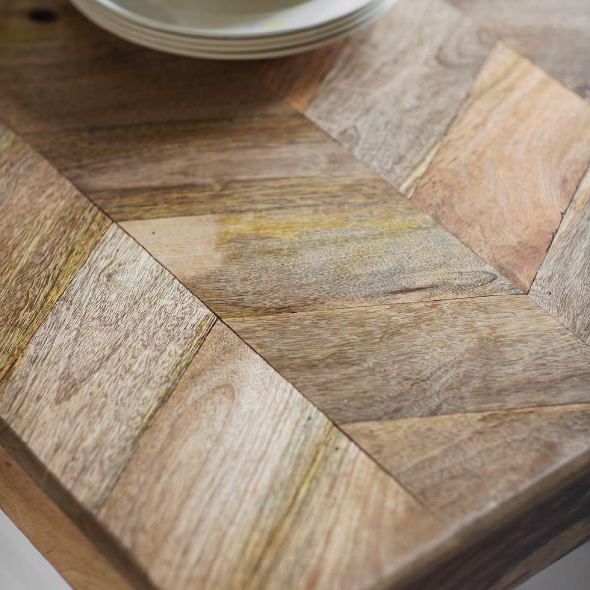 Our medium Logan Dining Table offers an on-trend industrial look that mixes a mango timber chevron table top with stainless steel frame. The beauty of a table and bench set-up (benchsold separately)is that you can squeeze plenty of people in, making it perfect for families as well as those who enjoy entertaining at home.