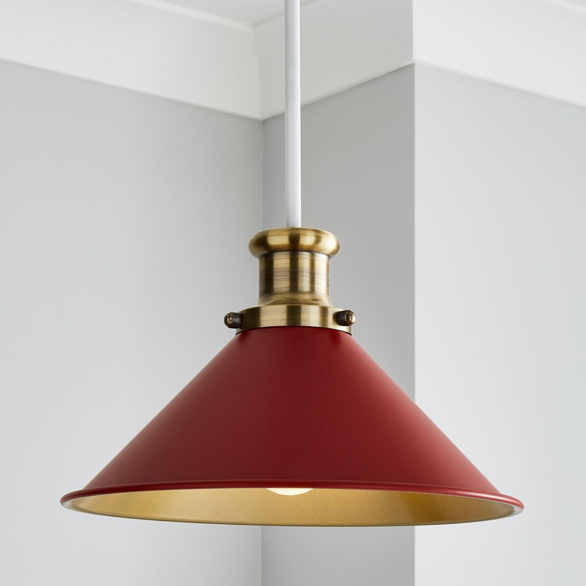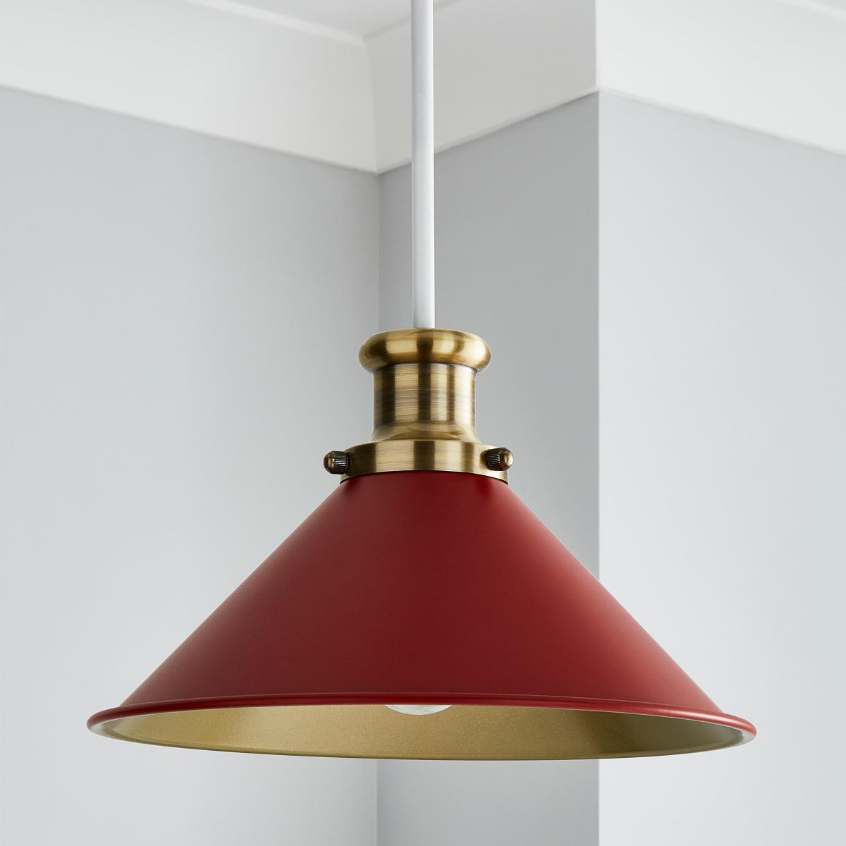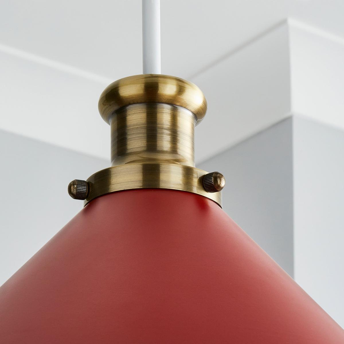 Add a modern industrial feel to your home with this stylish Logan East Fit Pendant. Featuring a painted shade with an antique brass collar, this modern easy fit pendant is available in a range of colours to complement a range of home décor styles. Matching family items are available to help coordinate your home.