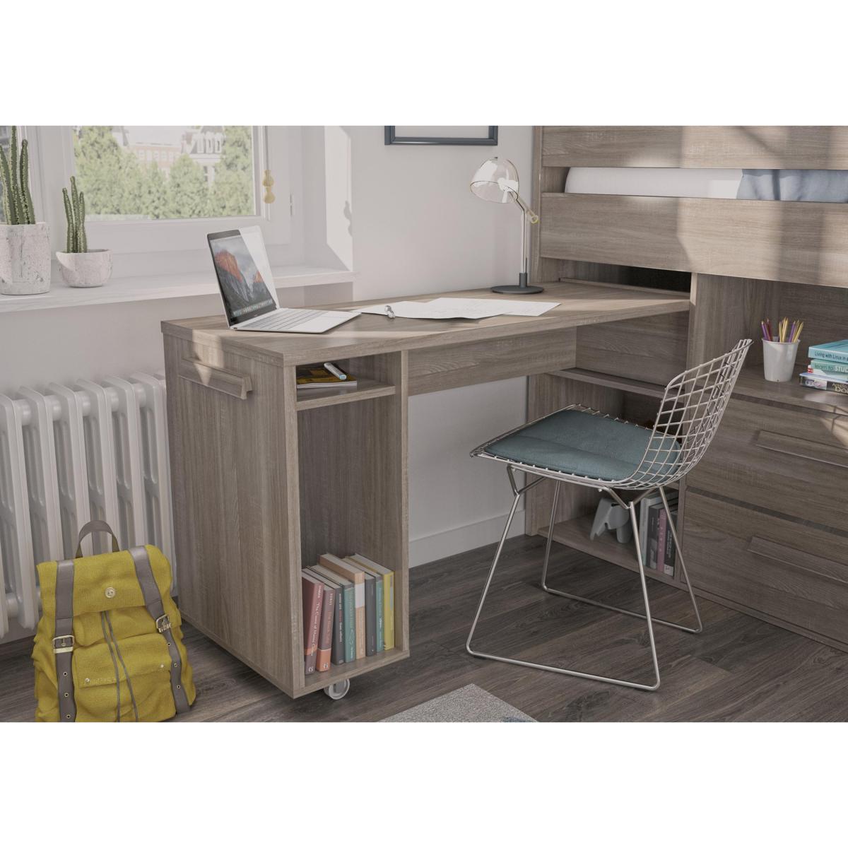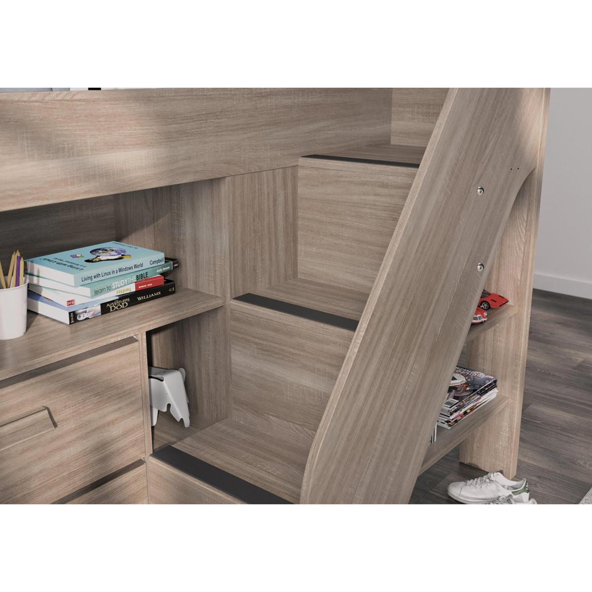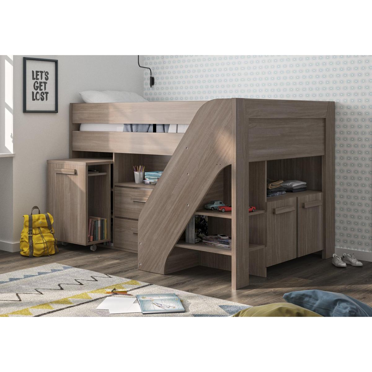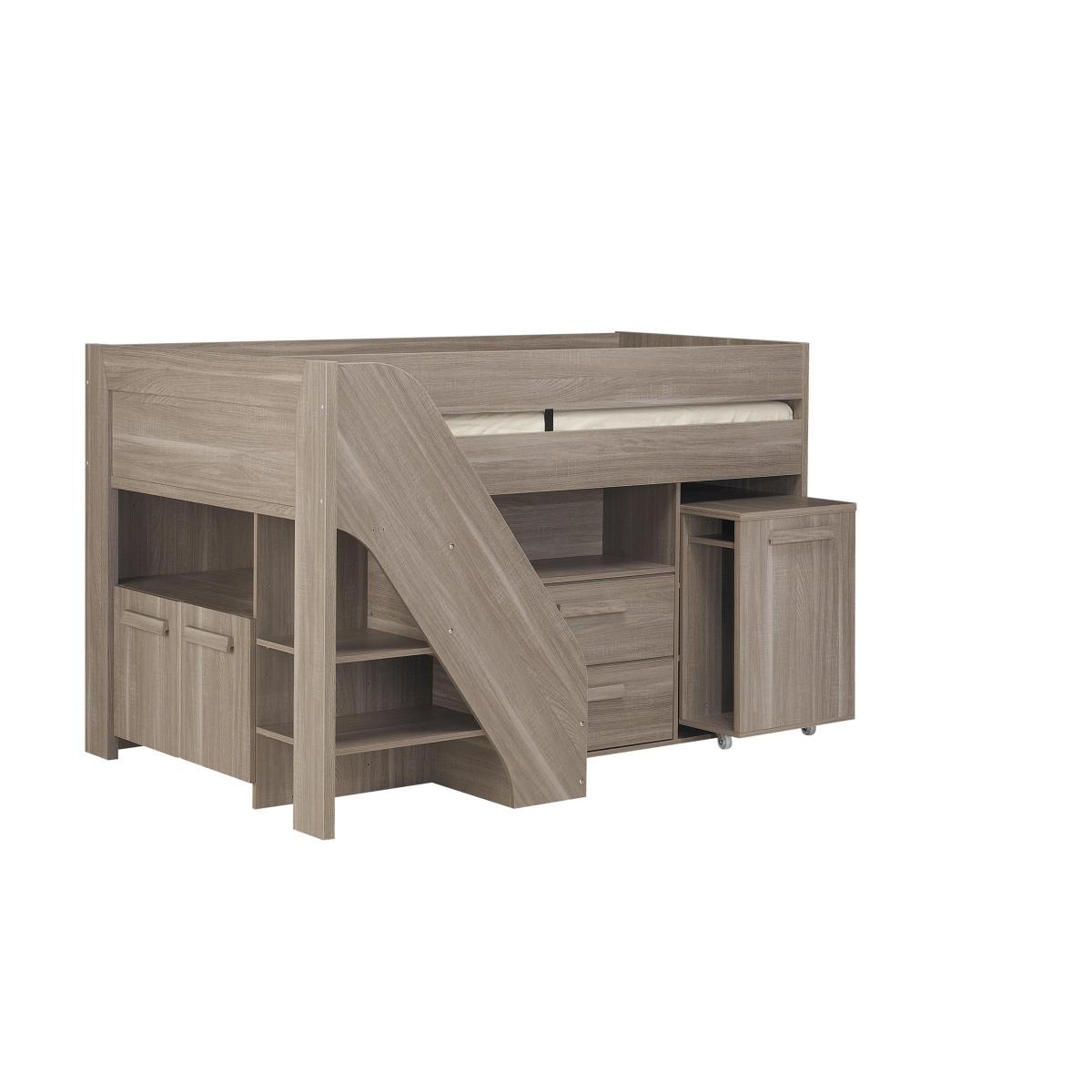 The Logan range of children’s bedroom furniture is beautifully and simply designed, with a charcoal oak finish. They won’t grow outgrow the sleek, contemporary style, so you can keep this furniture for years. For youngsters there’s a versatile mid-sleeper bed with lots of storage, a pull-out desk and a sturdy three step staircase with solid safety rail and slip-proof strips. For older children through to teenagers, the simply designed single bed, desk, wardrobes and chests of drawers have a style they won’t outgrow. This furniture will look also beautiful in a spare bedroom. A Furniture Village online exclusive. Everything your youngsters need to work, rest and play. Plenty of clever storage, a pull-out desk and a staircase with solid safety rail and slip-proof strips. What you’ll love. Lots storage with a pull-out desk. Very safe access to bed with 3-step stairs and rail. Attractive, charcoal oak finish. Clean and contemporary style suits all ages. Compact in scale, suits smaller spaces. Pull-out desk has an integrated cupboard. Meets British safety standards for children’s furniture. Great value price. A Furniture Village online exclusive. What you need to know. Pull out desk is on castors. In-built drawer and shelf storage. Reversible when assembled. Perforated panel mattress base. 3 step staircase has slip-resistant strips. Takes a 90 x 200cm single mattress, available separately. Heavy duty construction. Durable melamine finish. Product will be assembled on delivery. Part of the versatile Logan range.