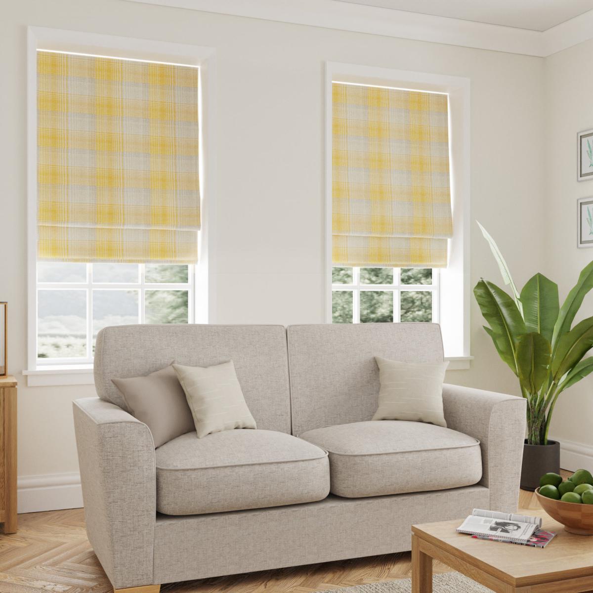 Crafted with a woven check in a contemporary ochre shade, the Logan roman blind features an easy to use chain mechanism and a soft lining to ensure easy folds across the blind. It is available in a choice of sizes to fit your window dimensions and has coordinating items available separately from our Logan range. At the back of your Roman Blind, the cords attach to the fabric using clips. We take the safety and well-being of children very seriously so these clips also double up as a child-safety feature. They will detach when they are put under too much strain to prevent the risk of strangulation. If they become detached accidentally during use of your blind, these can be easily clipped back into place to allow normal operation of the cords. To see instructions, please click. Here.