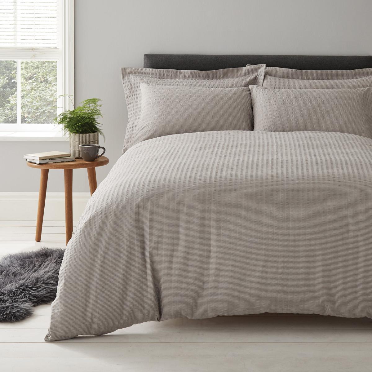 Logan Seersucker Grey Duvet Cover and Pillowcase Set Grey