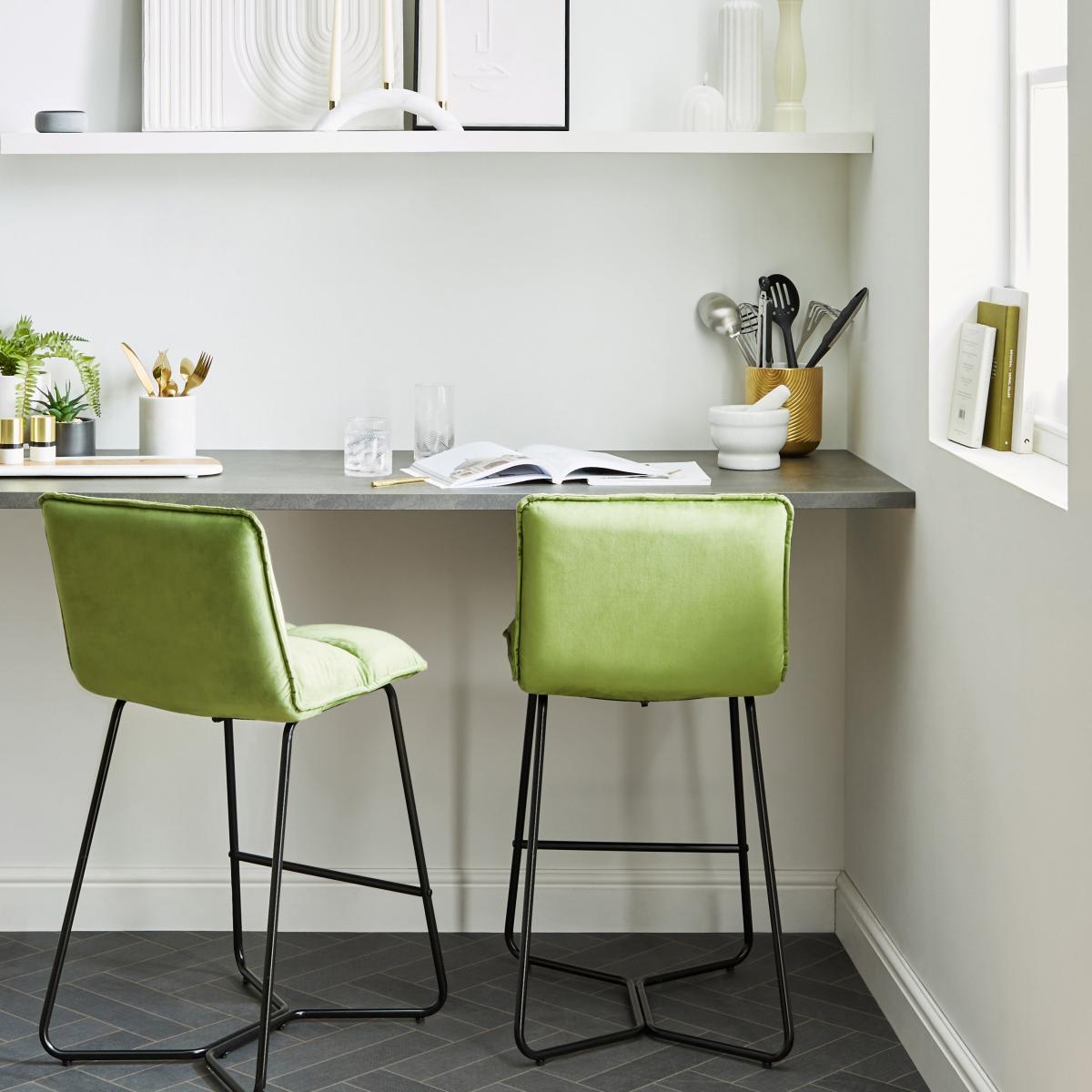 I love the Logan Velvet Bar Stool Olive for its rich colour and sophisticated texture, which instantly elevates any space. Its stylish velvet upholstery adds a touch of luxe, making it perfect for contemporary or eclectic interiors. The sleek black metal legs give it stability while keeping the look modern. These stools work particularly well in kitchen islands or breakfast bars where you want a pop of colour without overwhelming the space. Practical styling tips include pairing them with neutral or earthy tones to make the green pop, or mixing with other velvet accents for a coordinated, trendy vibe. Their compact size also makes them adaptable, ideal for smaller kitchens or home bars.