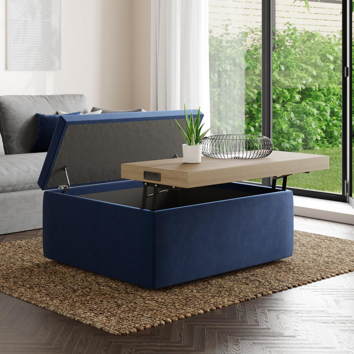 The epitome of opulence and refinement, this footstool is wrapped in sumptuous velvet upholstery that caresses your senses and transforms any room into a lavish haven. The plush velvet upholstery radiates opulence and comfort, creating an inviting focal point in your room. What sets this footstool apart is its discreet storage space, elegantly integrated to store away items you want within arm's reach but out of sight. From throws to remotes, this footstool offers a stylish solution to declutter your space without compromising on aesthetics. You can also lift the surface of the footstool to create a table top height to fit your needs. Whether placed in a chic dressing area, cozy reading nook, or as an accent piece in your living room, this footstool in velvet promises to deliver comfort, style, and a touch of glamour to your interior space.