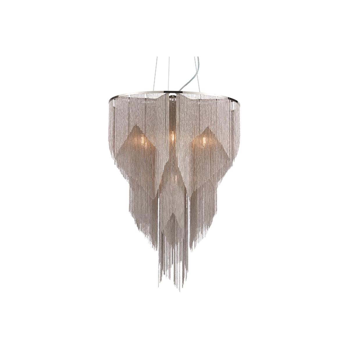 Loire Pendant Bright Nickel Plate Silver Effect Chain 6 Light Dimmable IP20 - - Bright nickel plate & silver effect chain