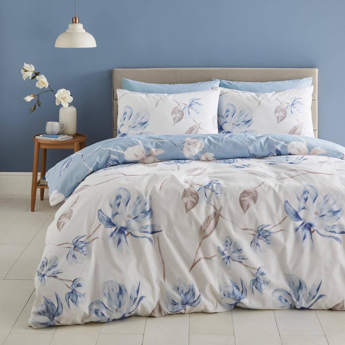 * Made from polycotton* Machine washable* 144 Thread count* Farmhouse style* Includes standard pillowcase Celebrate floral elegance with the Lois Floral Reversible Duvet Cover & Pillowcase Set. Its beautiful trailing magnolia blooms create a fresh, timeless vibe. With two colorways to choose from, you can switch styles effortlessly. Easy-care polycotton makes this bedding both practical and luxurious. Available in four sizes, it’s perfect for a quick bedroom refresh.