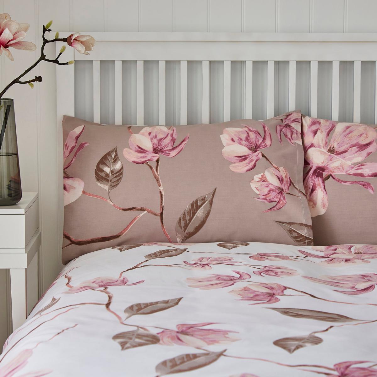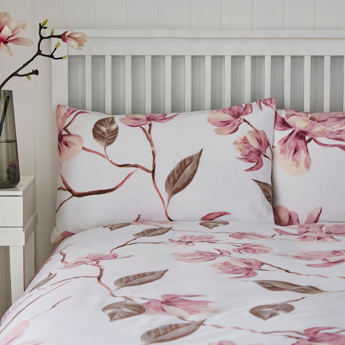 Lois Large Floral Pink Duvet Cover and Pillowcase Set Pink, Brown and White