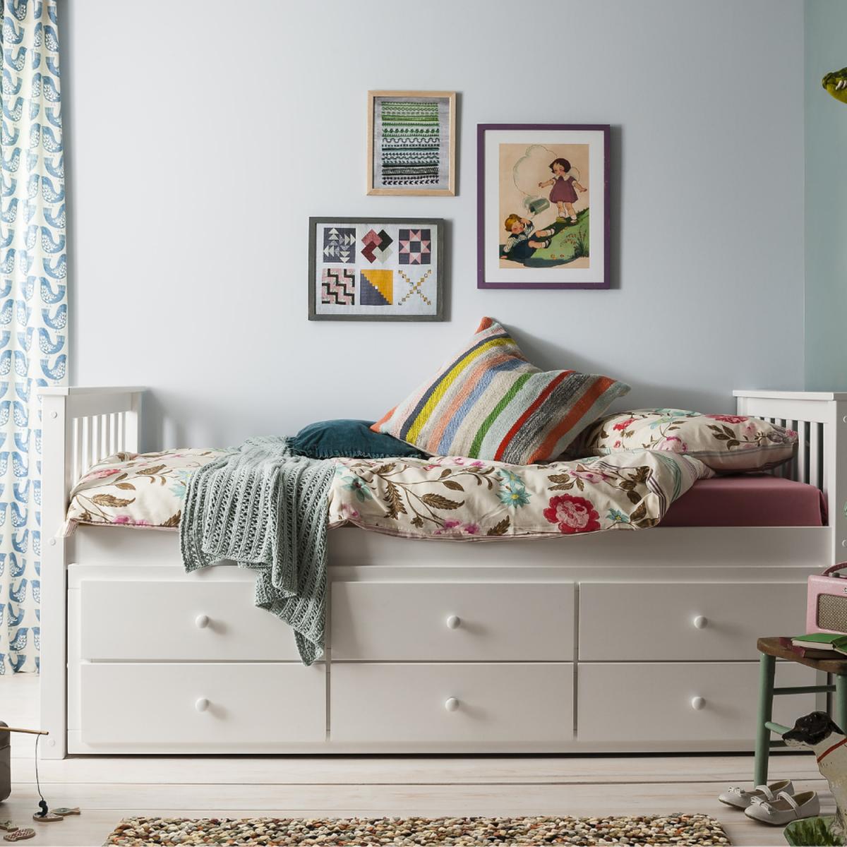 Magnificently multifaceted, the Loki Day Bed truly has it all. Thanks to its cool trundle feature and built-in drawers, the bed boasts an extra sleeping spot and storage space. Brilliant for children's bedrooms or guest bedrooms, the design is a lifesaver for spontaneous sleepovers. Simply pull out the trundle below, and presto, you have an additional bed! Aside from offering two sleeping options, Loki is an incredible space saver thanks to its three drawers, which are super handy for books, toys, or clothing. Its stylish white shade and contemporary aesthetic make it perfect for any decor.