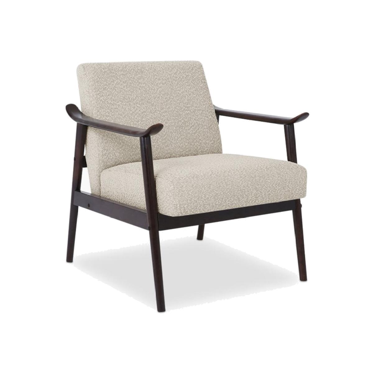 The Lola Speckled Stone Armchair is the embodiment of mid-century design. Comfortable and durable with that desirable vintage style, the Lola Accent Chair is the perfect standalone piece for living spaces and bedrooms. Crafted from a sturdy wooden frame and armrests stained in a walnut finish, with a padded seat and backrest in a tactile grey and cream sustainable boucle. The Lola Armchair encapsulates that retro feel. For a rich depth of colour and unique softness, the boucle used in this chair is not only of the highest quality but it is made from 100% recycled PET yarns so it is kinder to the environment too.