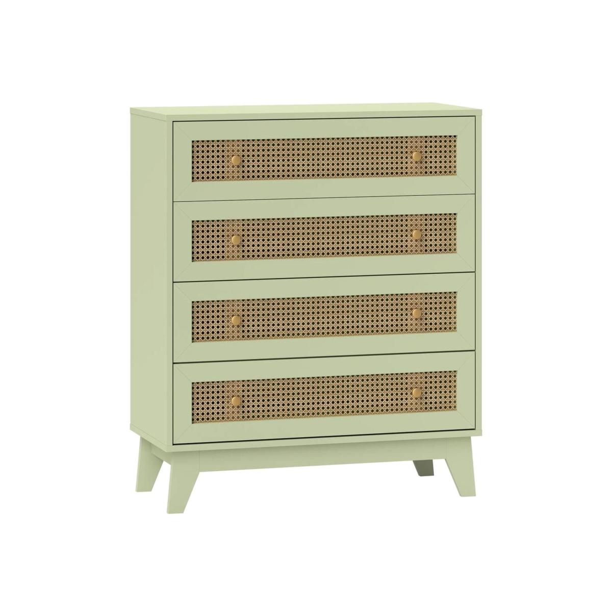 Bedroom drawers, with a subtle difference. This Chilli Furniture dresser comes with four drawers, each fitted with a middle rattan weave panel. this subtly brings a touch of the outside into your indoor styling. Made from particle board for a strong structure, finished in a light green look natural beauty. The four legged base provides plenty of support, and this drawer chest comes complete with anti tipping straps to secure a wall safely.
