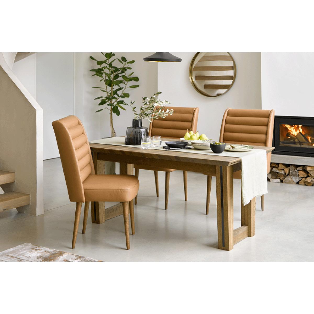 I love this one for its blend of classic charm and contemporary edge. The dark moss antique leather adds a sophisticated, vintage feel, making it versatile enough to work in both traditional and modern interiors. It's particularly great paired with natural wood tables or minimalist settings where its colour can pop. Practical styling tips include contrasting it with lighter tableware for a fresh look or layering with textured cushions to soften the leather for a cosy vibe. This chair also works well in a mixed-material scheme, where it can serve as both a statement piece and a practical dining seat.