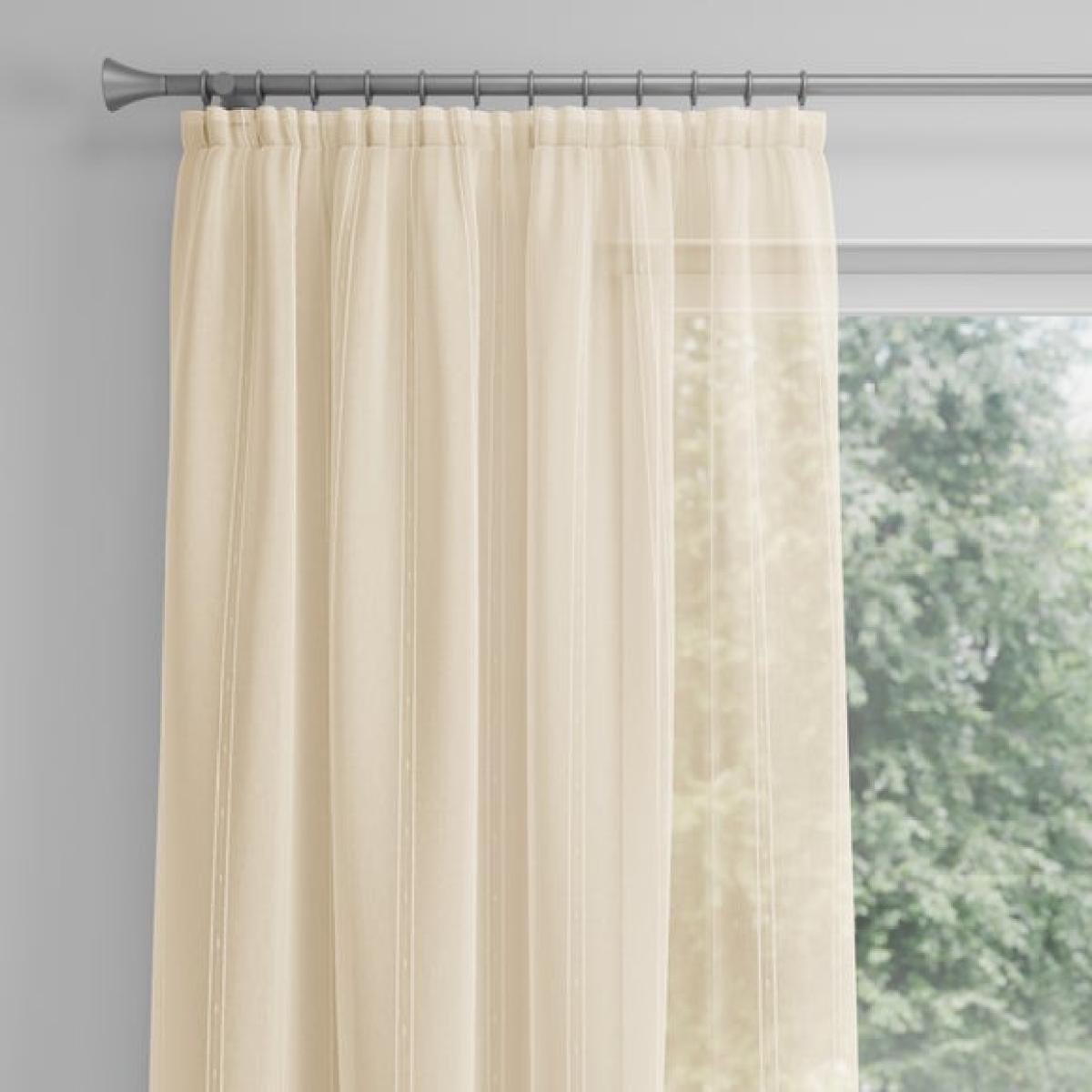 * Lightweight, polyester composition with chenille detailing * Vertical stripe design * Available in a selection of header options * Coordinating Made to Measure Voile Curtain available to purchase separately Add a sophisticated edge to your interiors with the Lola Made to Measure Voile Curtain. This lightweight polyester fabric features chenille-detailed vertical stripes, combining softness with structure. Ideal for crafting custom curtains, it allows light to gently filter through while offering privacy. Available in a variety of header options, it's a stylish choice for any modern home.