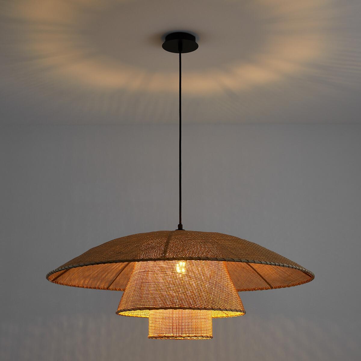 The Lola rattan lampshade. Bring an island feel to your home with this delicate rattan lampshade. Note : Electrical system sold separately. Find it by typing 'Baulind cable' into the search box on our site. Product Details. Rattan ceiling lampshade. Support for E27 socket for LED bulb, 9W max (not included)Discover the rest of the lighting collection on LaRedoute.. Size. Diameter 80 cm. Height 110 cm. Dimensions and weight of parcels:1 package82 x 82 x 22 cm2.8 kg.