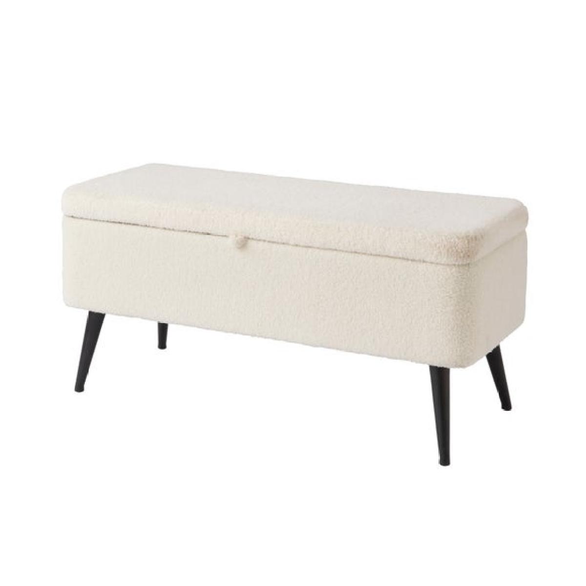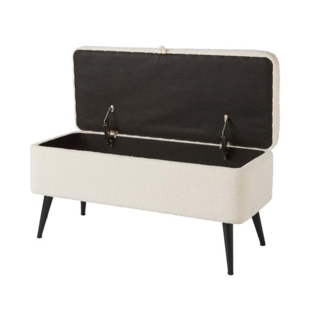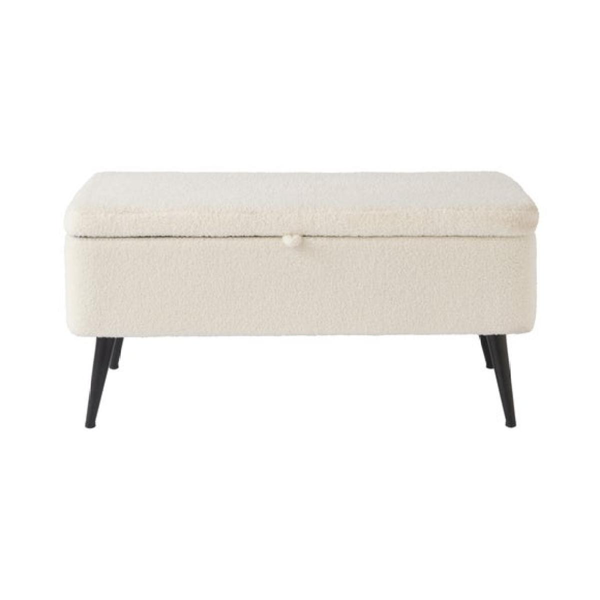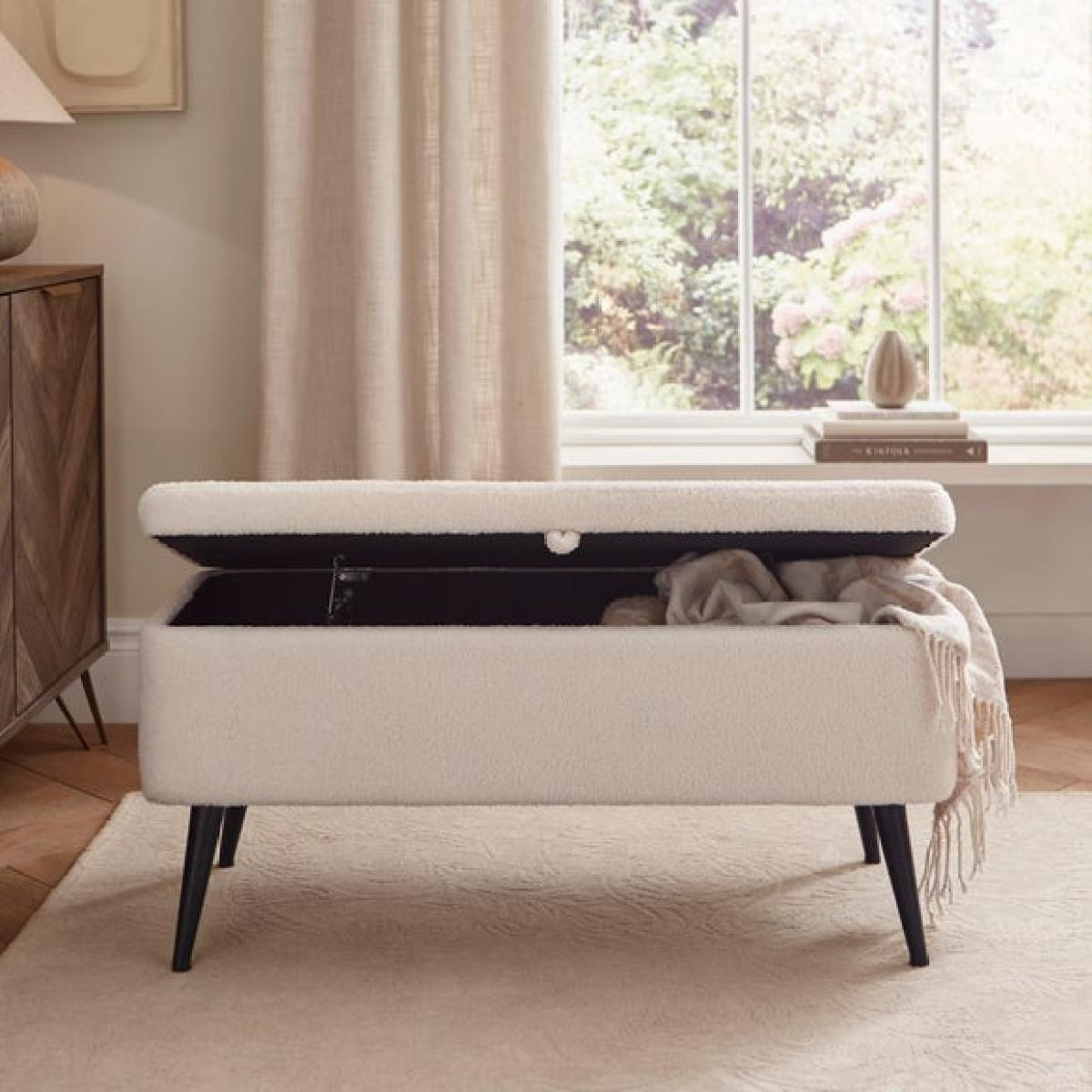 * Soft boucle-style teddy fabric * Hidden storage space * Foam-padded top * Modern black legs Bring cosy texture and smart design to your home with the Lola Teddy Storage Ottoman. Upholstered in soft, boucle-style teddy fabric, it adds warmth and contemporary style to any room. The cushioned top provides comfort for resting your feet or extra seating, while the spacious hidden storage helps keep your space organised. Finished with sleek black legs, it’s a versatile piece that works beautifully in living rooms, bedrooms or snug corners.