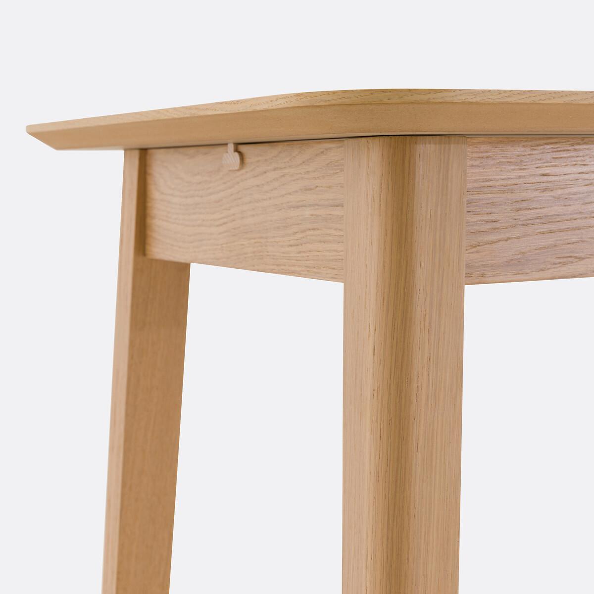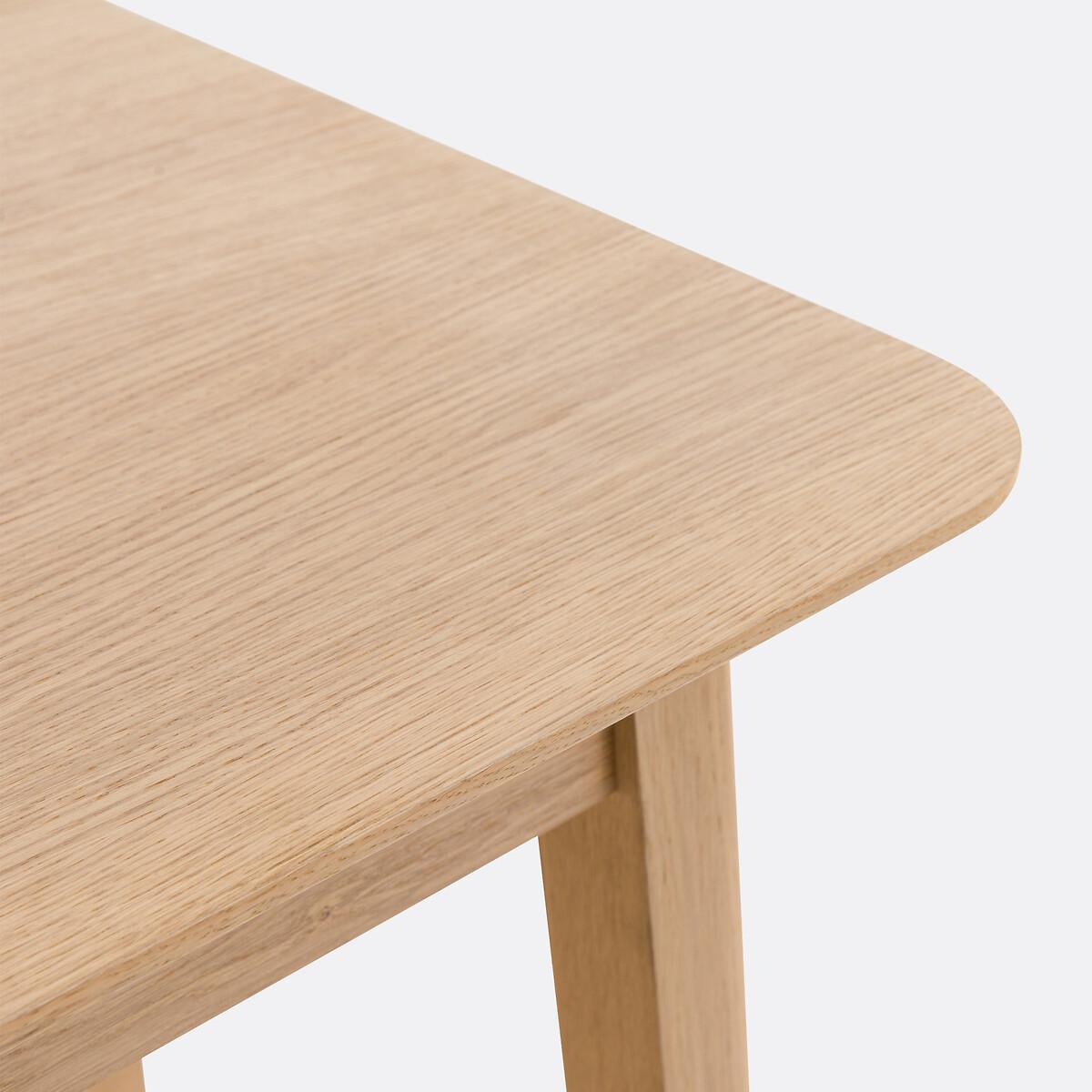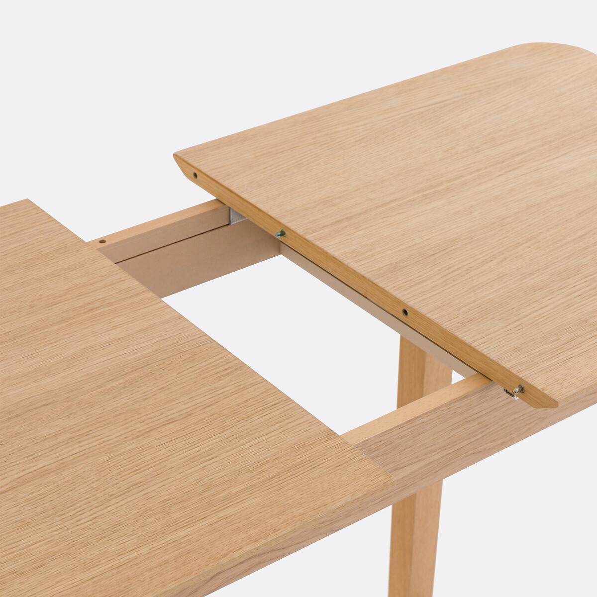Expandable and user-friendly. 1 extension of 36cm located under the top, which allows you to go from 4 to 6 guests in a jiffy. Made in Europe. Oak veneered, Lombard is an exclusive La Redoute Interiors product. Product Details • Seats 4-6 people • 1 extension of 36cm under the top • Top and extension in oak-veneered particleboard (thickness 23mm) and sheet in MDF with oak veneer. FSC® certified wood • Legs: finger-jointed beech oak veneer • Low rails, finger-jointed beech (19mm) oak veneer • Belt in finger-jointed beech with oak veneer • Acrylic varnish finish • Made in Europe. Dimensions • Length: 120 to 156cm • Height: 105cm • Depth: 60cm • Height from floor to rim: H94cmDelivery:. Assembly required. Available for home delivery. Note! Please check that all access points are large enough to accommodate your delivery (doors, stairs, lifts). • Made in Europe. • WOOD FROM SUSTAINABLY MANAGED FORESTS. FSC® certified wood comes from forests that are environmentally, socially and economically well managed. Dimensions and weight of parcel1 parcel • L131 x H9.5 x D69cm. 32kg