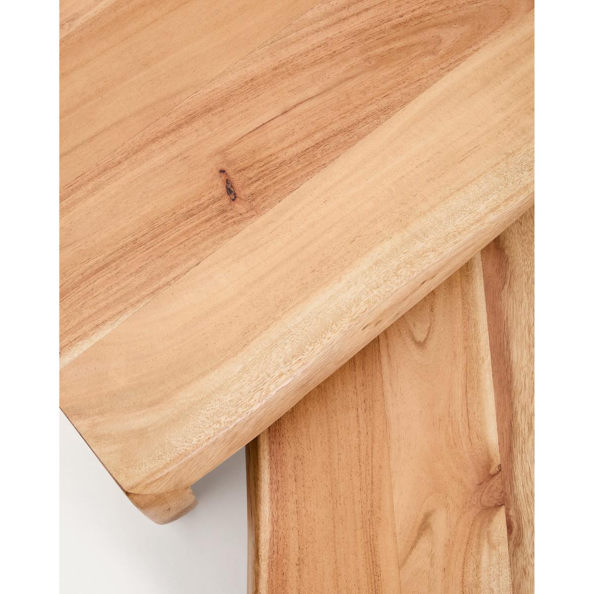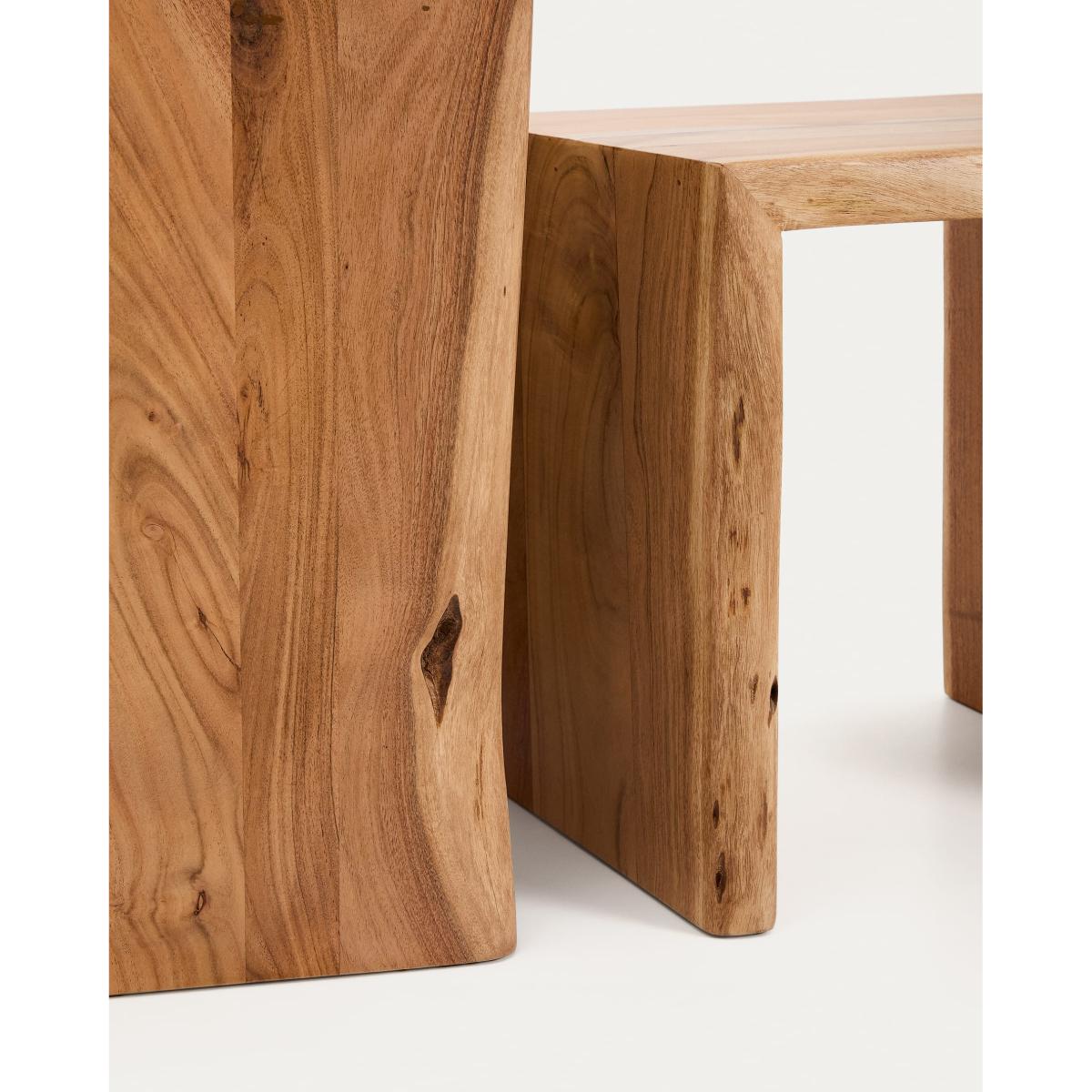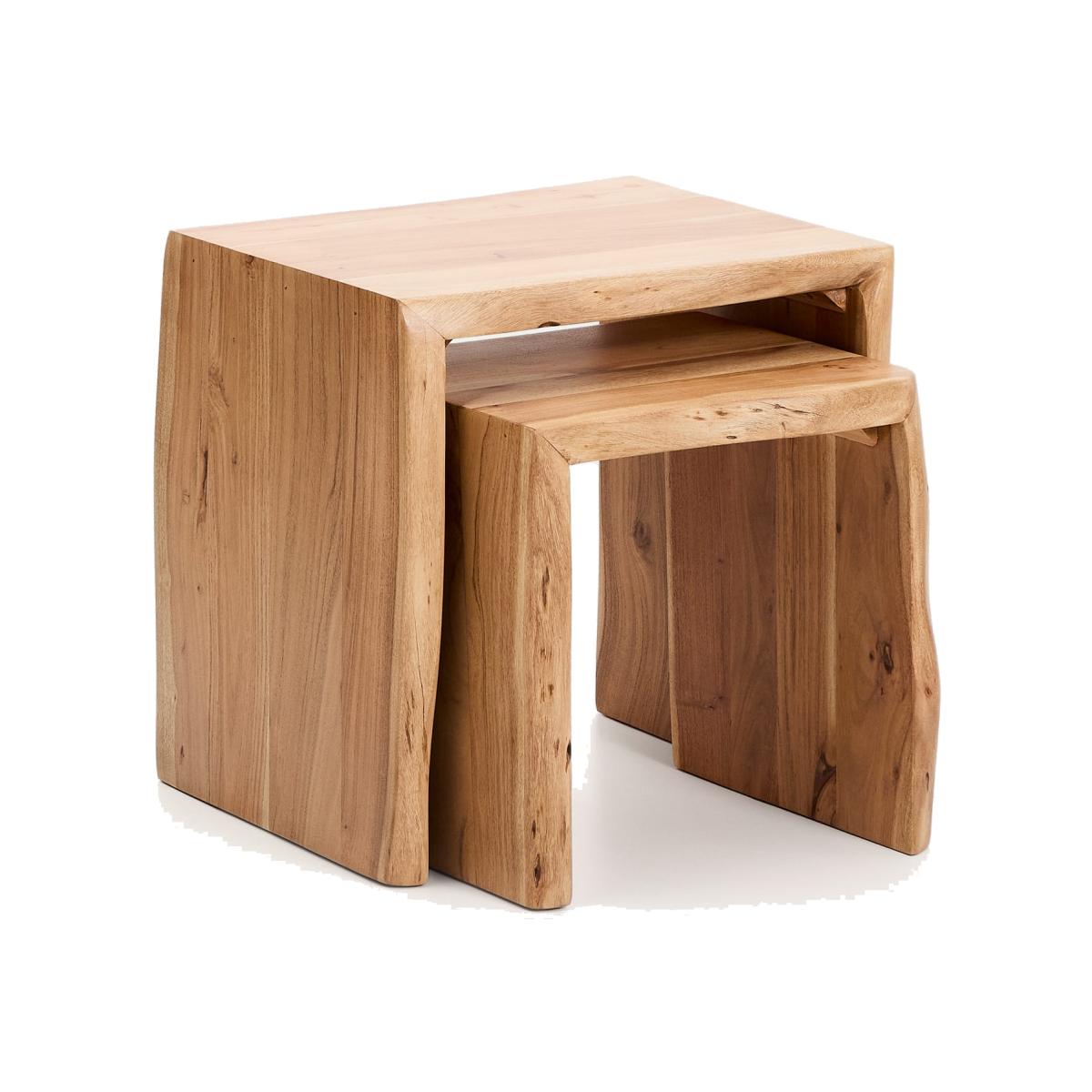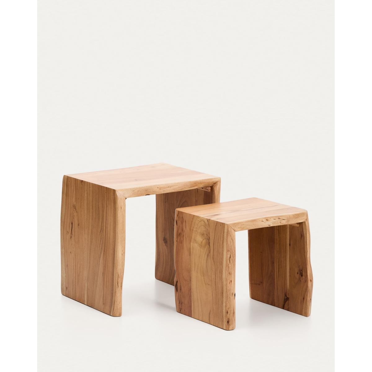Lomiri is the perfect balance between functionality and timeless design. Made from solid acacia wood, each piece in this side table set has been carefully crafted to bring out the beauty of the grain and the warmth of the material. The bleached finish adds a soft and sophisticated brightness, ideal for settings requiring freshness and a contemporary touch. The sturdy structure of the solid wood ensures high durability and stability, while the nest format allows you to optimise the space: you can use them together, separately or store one under the other to keep the room tidy at all times. Their minimalist design and pure lines make them the perfect complement for both modern living rooms and more classic settings, adapting to different decorative styles and functional needs.