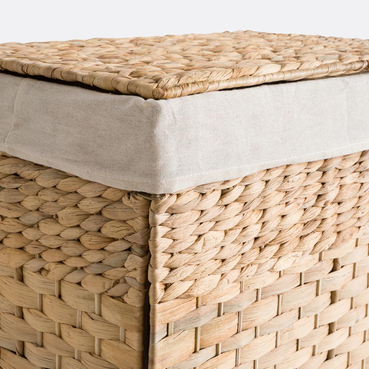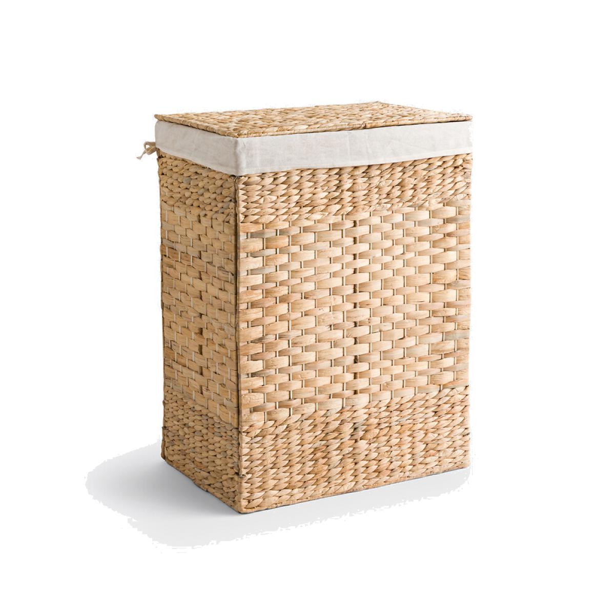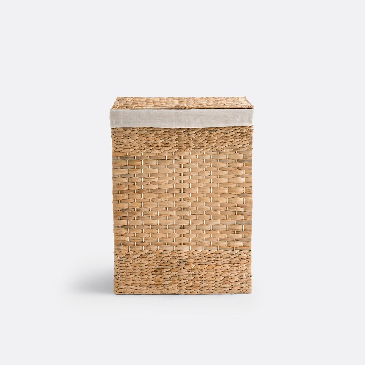 Pretty and practical. This laundry basket made from woven water hyacinth will add a decorative touch to the bedroom or bathroom. Product Details • Water hyacinth with pine structure • Coated polycotton interior (washable) • With lid • Can be folded. Dimensions • Length: 45cm • Width: 30cm • Height: 60cm