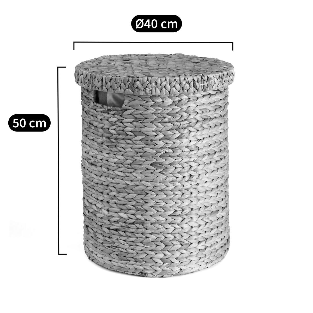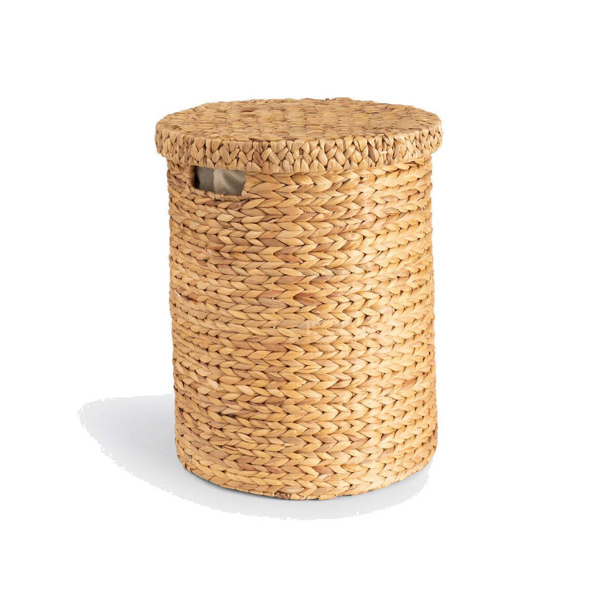 Pretty and practical. This laundry basket made from woven water hyacinth will add a decorative touch to the bedroom and bathroom.. Product Details • Water hyacinth • Removable cotton interior • With lid. Dimensions • Diameter: 40cm • Height: 50cm