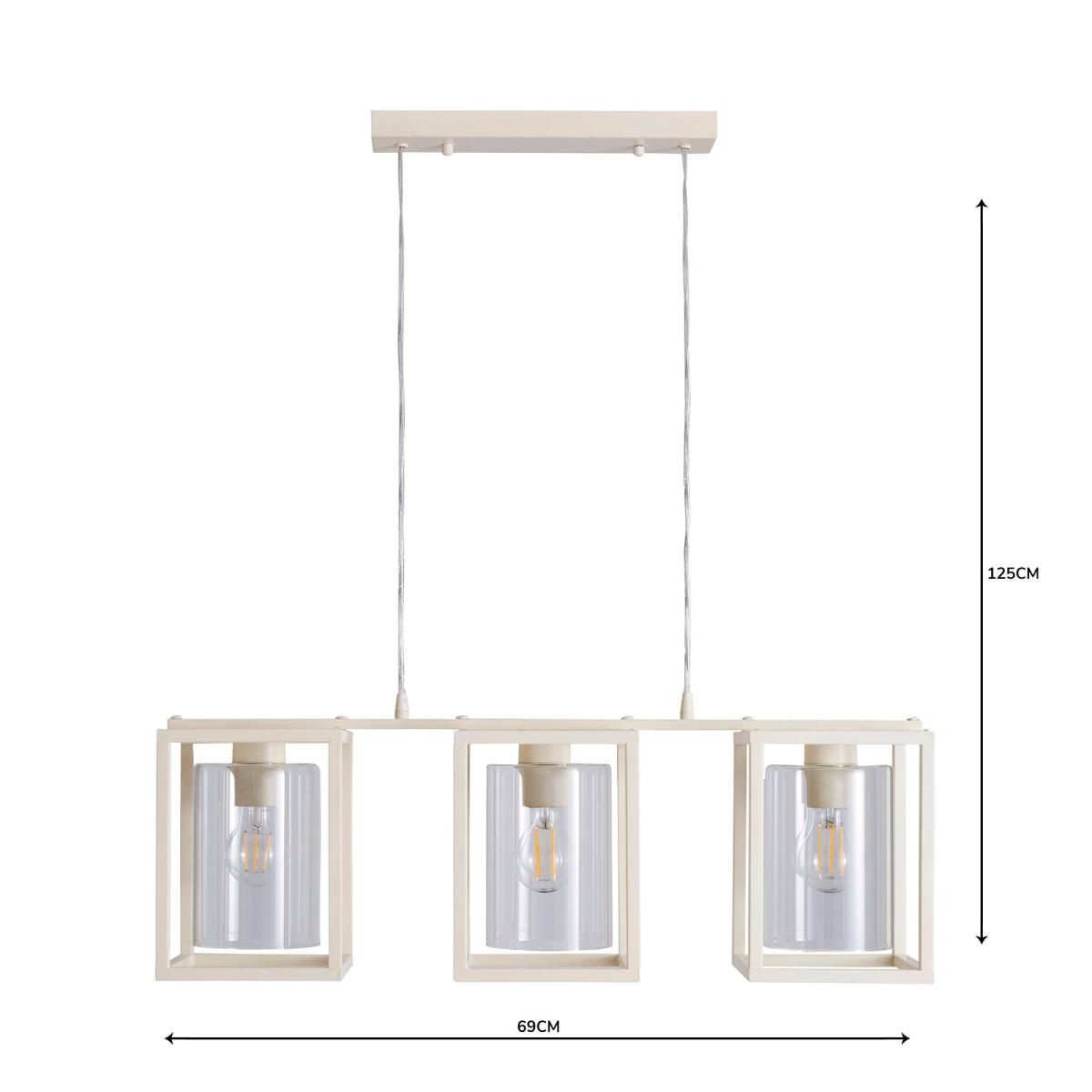 Bring a contemporary element to your home décor with the stunning adjustable London 3 Light Fitting. Crafted with a metal frame, clear glass shades and a painted finish, this light fitting is the perfect way to enhance your décor with a modern and rustic touch. This piece is dimmable compatible, making it both an attractive and practical product. Please note: Bulbs not included.