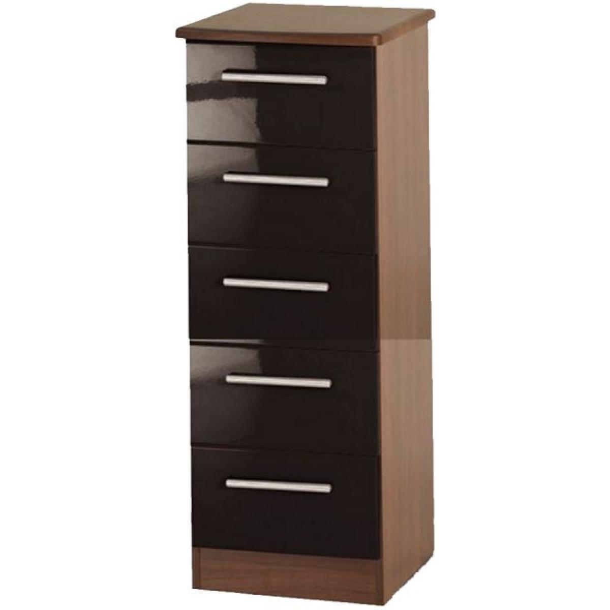 The London Bedroom furniture collection is truly a versatile collection, in a variety of finishes you will be able to customise this 5 Drawer Locker however you want with a choice of 9 high gloss finishes (Ebony Gloss, Black Gloss, Ruby Gloss, Cream Gloss, Pink Gloss, Mushroom Gloss, Aubergine Gloss, White Gloss and Grey Gloss) and 7 base unit finishes (Noche Walnut, Oak, White, Black, Cream, Bardolino and Toronto Walnut) you will be able to truly customise your locker to suit both you and your home. The Stunning London Range combines the modern with the contemporary to bring us some truly beautiful pieces. Designed with today's lifestyle in mind the London Bedroom Furniture Collection making the 5 Drawer Locker an elegant, practical and sophisticated locker. All Pieces will arrive ready assembled. 12 Month Guarantee. Dimensions: 107.5cm x 39.5cm x 41.5cm