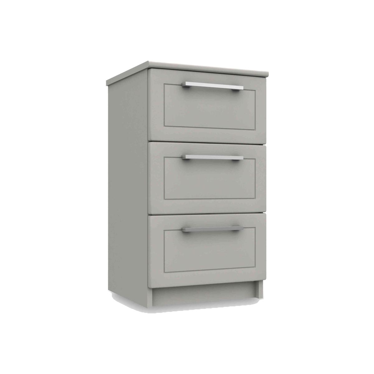 High-gloss contemporary style with a sophisticated edge – that’s our London Bedrooms Bexley bedroom furniture range. Equally at home in both classic and contemporary homes, the pieces in this collection feature distinctive decorative grooving and linear metal handles, and come in a choice of colours for that gorgeous glossy finish. And with a wide selection of hinged-door and bifold wardrobes, plus chests of drawers and bedside cabinets in all sizes, it’s easy to give any bedroom Bexley’s high-gloss style treatment. Delivered to you fully assembled, Bexley is hand built in London from sustainable materials sourced throughout the UK. Here’s the perfect three-drawer bedside cabinet – or even chest of drawers if you so choose. Spacious storage with a gorgeous high-gloss finish. Made in London. Why you'll love it Clean, contemporary and utterly stylish. Gorgeous high-gloss finish in a choice of colours. Understated linear grooving and metal handles add sophistication. Drawers are soft closing. Built by hand from UK-sourced sustainable materials. Delivered to you fully assembled. Made in London. This 3-drawer bedside cabinet is part of the London Bedrooms Bexley range. What you need to know This finish may show surface scratches under certain lighting. Do not place in direct sunlight. Do not use abrasive cleaning products. Wipe clean with a damp cloth, and dry with a soft duster. We recommend using coasters and placemats at all times. Please note: This product comes fully assembled. Please ensure there is sufficient access for our delivery team. WARNING! Furniture can tip over unexpectedly and cause injury. This item must be fixed to a wall using the anti-tip kit provided. Be sure to use the correct wall fixings suitable for the walls in your home. Furniture Village is not able to fix anti-tip devices for you. Seek professional advice if you are unsure.
