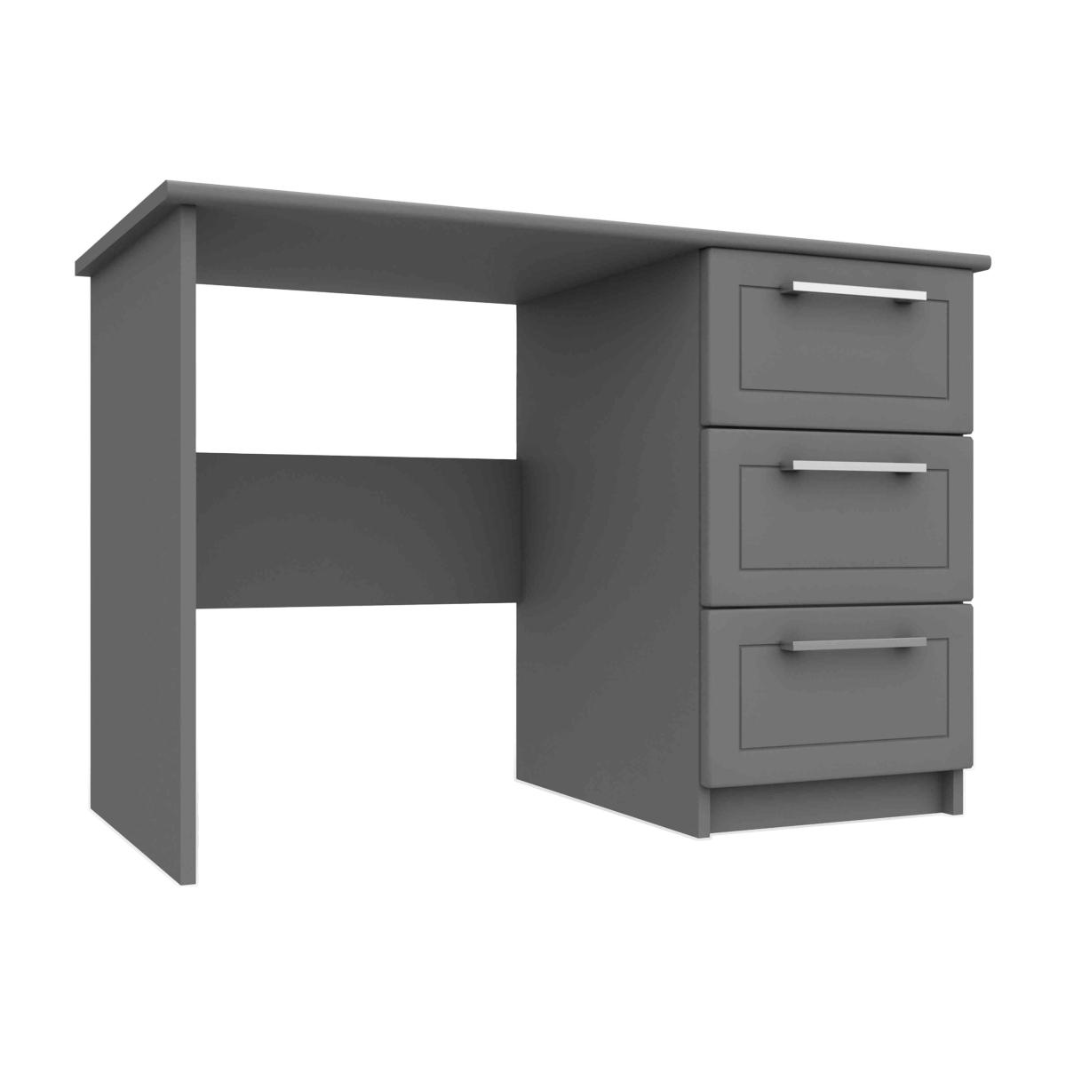 High-gloss contemporary style with a sophisticated edge – that’s our London Bedrooms Bexley bedroom furniture range. Equally at home in both classic and contemporary homes, the pieces in this collection feature distinctive decorative grooving and linear metal handles, and come in a choice of colours for that gorgeous glossy finish. And with a wide selection of hinged-door and bifold wardrobes, plus chests of drawers and bedside cabinets in all sizes, it’s easy to give any bedroom Bexley’s high-gloss style treatment. Delivered to you fully assembled, Bexley is hand built in London from sustainable materials sourced throughout the UK. Stylish and practical, this dressing table with a three-drawer pedestal comes in a choice of colours for its high-gloss fish. Plus it’s hand built from sustainable materials. Why you'll love it Clean, contemporary and utterly stylish. Gorgeous high-gloss finish in a choice of colours. Understated linear grooving and metal handles add sophistication. Drawers are soft closing. Built by hand from UK-sourced sustainable materials. Delivered to you fully assembled. Complete it with the Bexley dressing table stool and mirror. Made in London. This 3-drawer dressing table is part of the London Bedrooms Bexley range. What you need to know This finish may show surface scratches under certain lighting. Do not place in direct sunlight. Do not use abrasive cleaning products. Wipe clean with a damp cloth, and dry with a soft duster. We recommend using coasters and placemats at all times. Please note: This product comes fully assembled. Please ensure there is sufficient access for our delivery team. WARNING! Furniture can tip over unexpectedly and cause injury. This item must be fixed to a wall using the anti-tip kit provided. Be sure to use the correct wall fixings suitable for the walls in your home. Furniture Village is not able to fix anti-tip devices for you. Seek professional advice if you are unsure.