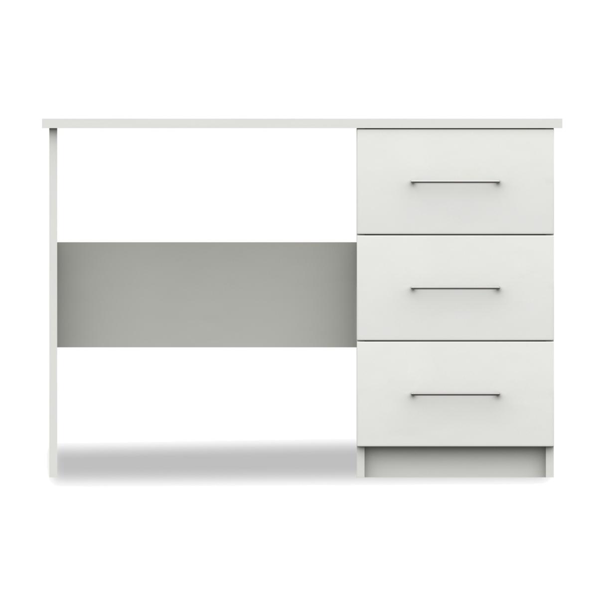 Make getting ready more relaxing with this stylish high-gloss dressing table. With plenty of surface space and three drawers there’s room for all your accoutrements. By London Bedrooms. Why you'll love it Sleek bedroom furniture style for fashionable modern homes. Practical 3-drawer dressing table elegant and sophisticated. Drawer fronts have bevelled edges that accentuate the high-gloss finish. Drawers have sturdy, heavy-duty bases and premium soft-close mechanisms. In a choice of colours. Made in the UK from UK-sourced materials. This 3-drawer dressing table is part of the London Bedrooms Castle range. What you need to know Assembled and installed for you on delivery. Cost is included in the delivery charge. Finish is not heat resistant or heat proof. Dust with a lint-free cloth. Do not use silicone-based furniture polishes or abrasive cleaning products. Always use coasters and placemats to protect the surface. WARNING!