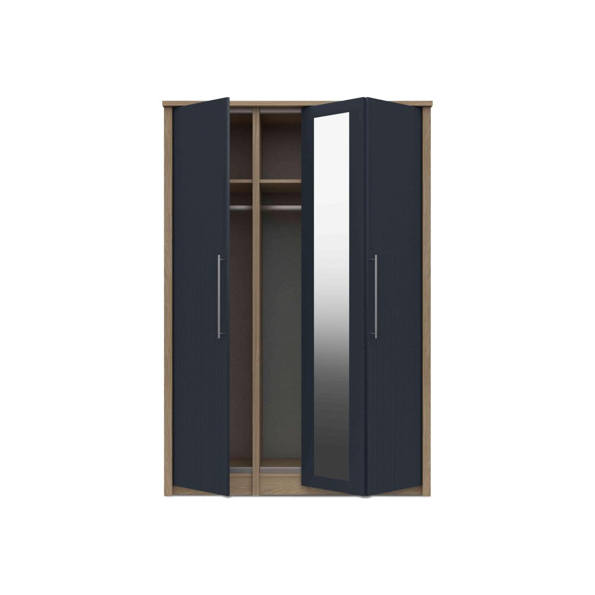 Behind Chelsea’s effortlessly stylish appearance is inspired design and meticulous construction. Hand built in London from materials sustainably sourced throughout the UK, this collection's wardrobes and chests of drawers are distinctive and contemporary. Light wood-tone frames contrast stylishly with matt painted surfaces, door and drawer fronts have fluting, and handles are made of nickel with a smooth satin finish. With multiple sizes of hinged and bifold wardrobes and an equally impressive array of chests of drawers, it’s easy to bring Chelsea home to any size of bedroom. And, even easier, every piece is delivered fully assembled. Bifold doors save space in a smaller room. And that’s just one of the reasons why you’ll be excited to bring home this stylish three-door bifold wardrobe. In a choice of painted colour finishes. Why you'll love it Fashionable and contemporary, the Chelsea look is always in style. Matt painted finish in a choice of colours. Contrasting pale woodgrain-effect frame. Soft-closing doors have a subtle fluted effect. Satin-finished nickel door handles. Middle door has a full-length mirror. Built by hand from UK-sourced sustainable materials. Delivered fully assembled. Made in London. This 3-door bifold wardrobe is part of the London Bedrooms Chelsea range. What you need to know 1 hanging rail and 1 fixed shelf in each wardrobe compartment. Dust with a lint-free cloth. Do not use silicon-based furniture polish. Painted finish is hard wearing but may chip if knocked. Please note: This product comes fully assembled. Please ensure there is sufficient access for our delivery team. WARNING! Furniture can tip over unexpectedly and cause injury. This item must be fixed to a wall using the anti-tip kit provided. Be sure to use the correct wall fixings suitable for the walls in your home. Furniture Village is not able to fix anti-tip devices for you. Seek professional advice if you are unsure.