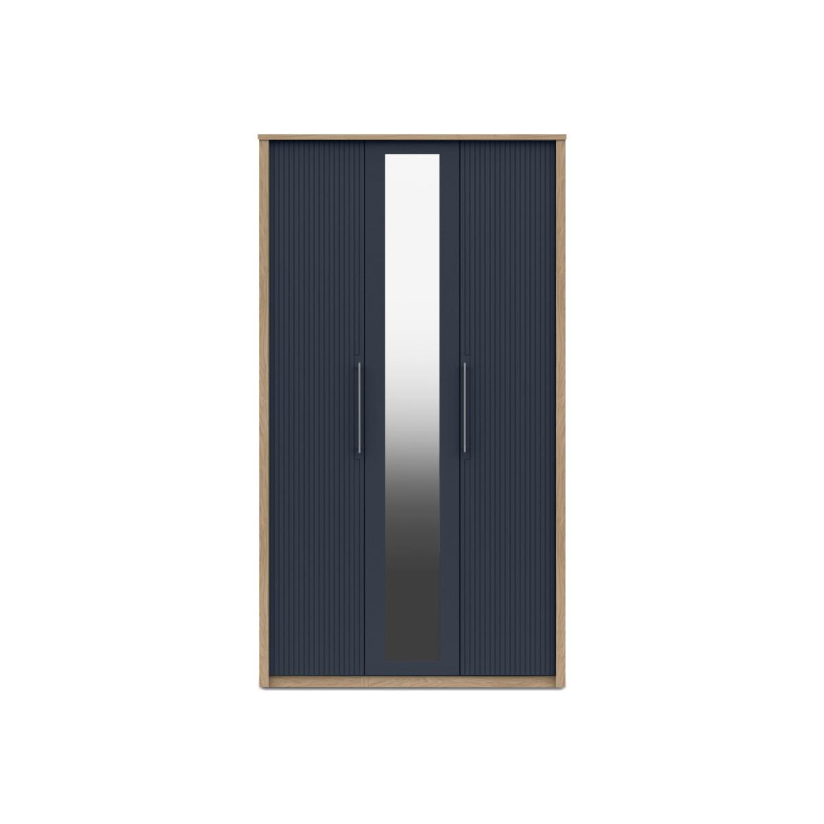 Behind Chelsea’s effortlessly stylish appearance is inspired design and meticulous construction. Hand built in London from materials sustainably sourced throughout the UK, this collection's wardrobes and chests of drawers are distinctive and contemporary. Light wood-tone frames contrast stylishly with matt painted surfaces, door and drawer fronts have fluting, and handles are made of nickel with a smooth satin finish. With multiple sizes of hinged and bifold wardrobes and an equally impressive array of chests of drawers, it’s easy to bring Chelsea home to any size of bedroom. And, even easier, every piece is delivered fully assembled. This tall wardrobe is perfect for a bedroom with higher ceilings – it’s a great way to enjoy more storage space without losing valuable floor space. Contemporary painted finish. Why you'll love it Fashionable and contemporary, the Chelsea look is always in style. Matt painted finish in a choice of colours. Contrasting pale woodgrain-effect frame. Soft-closing doors have a subtle fluted effect. Satin-finished nickel door handles. Middle door has a full-length mirror. This tall wardrobe makes the most of a higher ceiling. Built by hand from UK-sourced sustainable materials. Delivered fully assembled. Made in London. This 3-door tall wardrobe with mirror is part of the London Bedrooms Chelsea range. What you need to know 1 hanging rail and 1 fixed shelf in each wardrobe compartment. Dust with a lint-free cloth. Do not use silicon-based furniture polish. Painted finish is hard wearing but may chip if knocked. Please note: This product comes fully assembled. Please ensure there is sufficient access for our delivery team. WARNING! Furniture can tip over unexpectedly and cause injury. This item must be fixed to a wall using the anti-tip kit provided. Be sure to use the correct wall fixings suitable for the walls in your home. Furniture Village is not able to fix anti-tip devices for you. Seek professional advice if you are unsure.