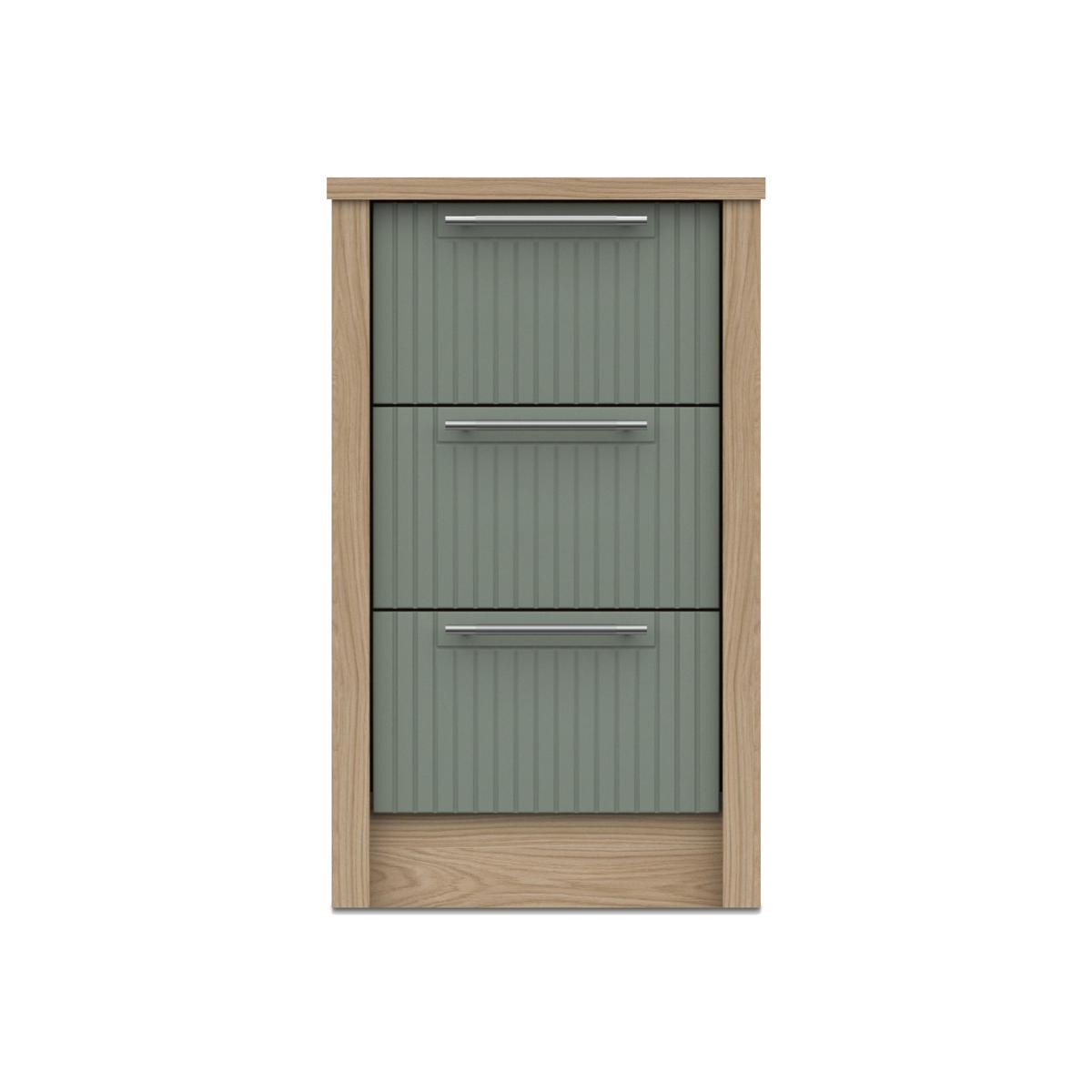 Behind Chelsea’s effortlessly stylish appearance is inspired design and meticulous construction. Hand built in London from materials sustainably sourced throughout the UK, this collection's wardrobes and chests of drawers are distinctive and contemporary. Light wood-tone frames contrast stylishly with matt painted surfaces, door and drawer fronts have fluting, and handles are made of nickel with a smooth satin finish. With multiple sizes of hinged and bifold wardrobes and an equally impressive array of chests of drawers, it’s easy to bring Chelsea home to any size of bedroom. And, even easier, every piece is delivered fully assembled. We’re calling it a bedside cabinet but this one is spacious enough to be a small chest of drawers in a compact bedroom. And definitely stylish enough to make an impact in any space. Why you'll love it Elegant and contemporary, the Chelsea look is always in style. Matt painted finish in a choice of colours. Contrasting pale woodgrain-effect frame. Soft-closing drawers have a subtle fluted effect. Satin-finished nickel drawer handles. Built by hand from UK-sourced sustainable materials. Delivered fully assembled. Made in London. This 3-drawer bedside cabinet is part of the London Bedrooms Chelsea range. What you need to know Dust with a lint-free cloth. Do not use silicon-based furniture polish. Painted finish is hard wearing but may chip if knocked. Protect the surface by using coasters at all times. Please note: This product comes fully assembled. Please ensure there is sufficient access for our delivery team. WARNING! Furniture can tip over unexpectedly and cause injury. This item must be fixed to a wall using the anti-tip kit provided. Be sure to use the correct wall fixings suitable for the walls in your home. Furniture Village is not able to fix anti-tip devices for you. Seek professional advice if you are unsure.