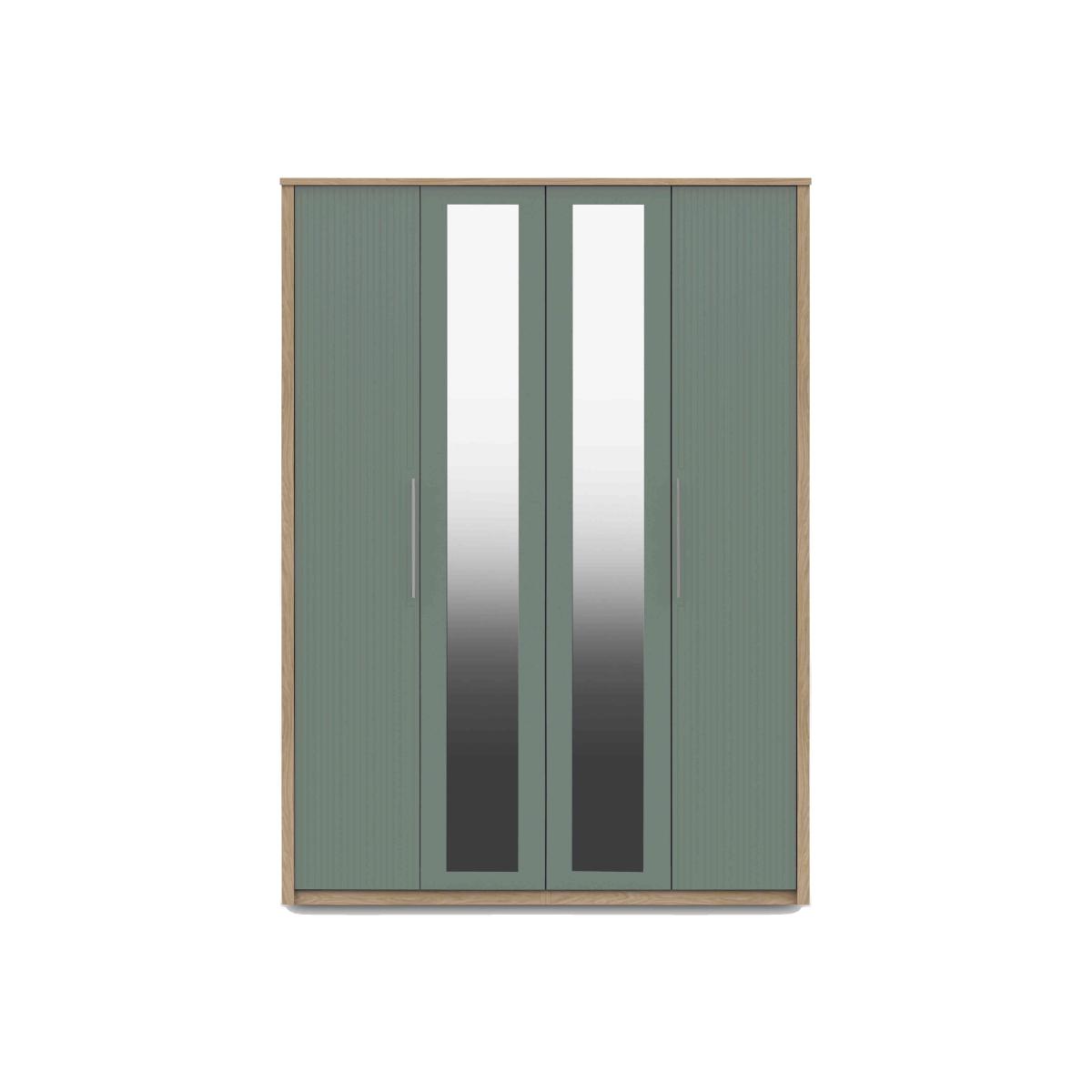 Behind Chelsea’s effortlessly stylish appearance is inspired design and meticulous construction. Hand built in London from materials sustainably sourced throughout the UK, this collection's wardrobes and chests of drawers are distinctive and contemporary. Light wood-tone frames contrast stylishly with matt painted surfaces, door and drawer fronts have fluting, and handles are made of nickel with a smooth satin finish. With multiple sizes of hinged and bifold wardrobes and an equally impressive array of chests of drawers, it’s easy to bring Chelsea home to any size of bedroom. And, even easier, every piece is delivered fully assembled. Enjoy wardrobe storage with extra height and plenty of width with this four-door tall wardrobe. Hand built in London, it has a lovely fluted and painted finish. Why you'll love it Fashionable and contemporary, the Chelsea look is always in style. Matt painted finish in a choice of colours. Contrasting pale woodgrain-effect frame. Soft-closing doors have a subtle fluted effect. Satin-finished nickel door handles. 2 middle doors have full-length mirrors. This tall wardrobe makes the most of a higher ceiling. Built by hand from UK-sourced sustainable materials. Delivered fully assembled. Made in London. This 4-door tall wardrobe with mirror doors is part of the London Bedrooms Chelsea range. What you need to know 1 hanging rail and 1 fixed shelf in each wardrobe compartment. Dust with a lint-free cloth. Do not use silicon-based furniture polish. Painted finish is hard wearing but may chip if knocked. Please note: This product comes fully assembled. Please ensure there is sufficient access for our delivery team. WARNING! Furniture can tip over unexpectedly and cause injury. This item must be fixed to a wall using the anti-tip kit provided. Be sure to use the correct wall fixings suitable for the walls in your home. Furniture Village is not able to fix anti-tip devices for you. Seek professional advice if you are unsure.