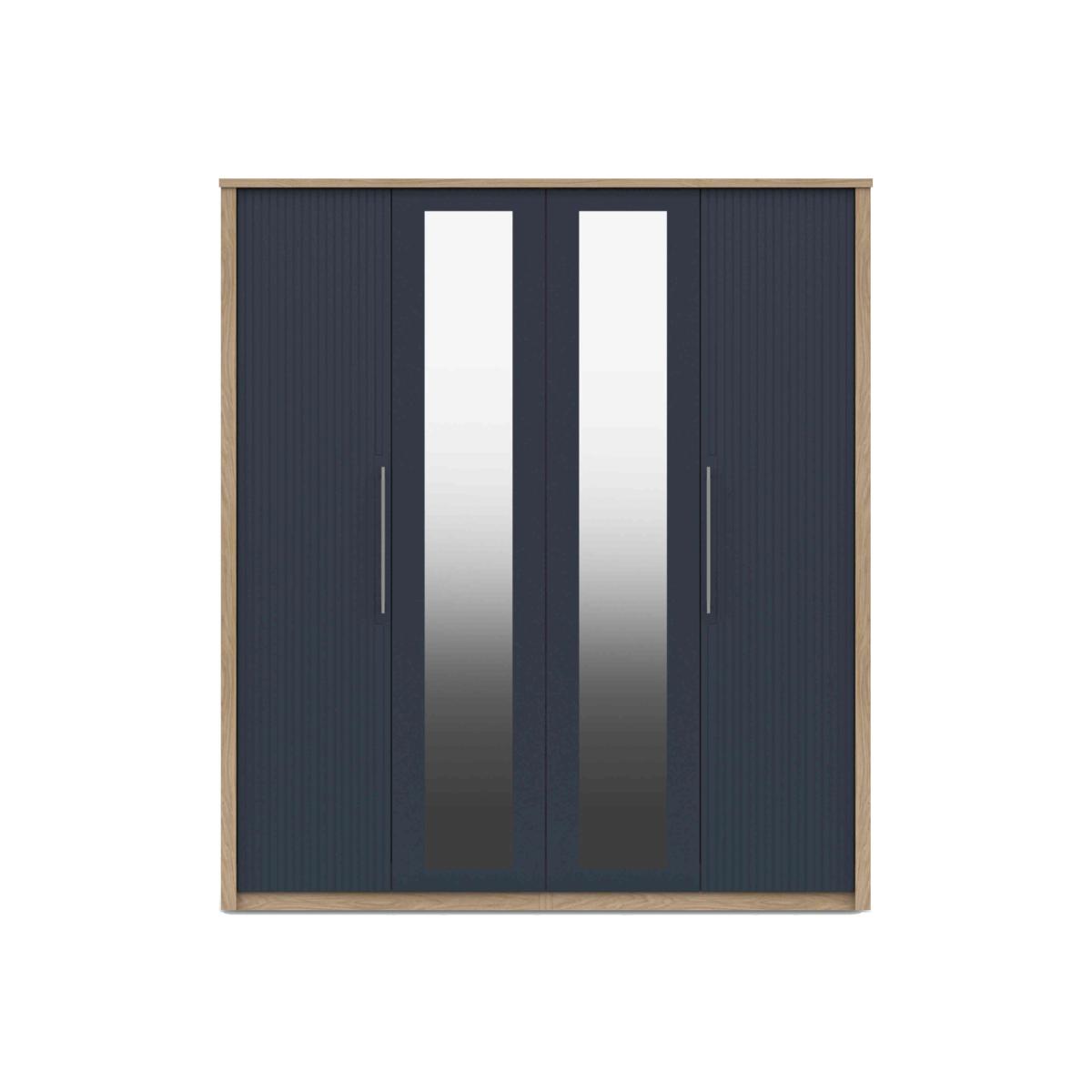 Behind Chelsea’s effortlessly stylish appearance is inspired design and meticulous construction. Hand built in London from materials sustainably sourced throughout the UK, this collection's wardrobes and chests of drawers are distinctive and contemporary. Light wood-tone frames contrast stylishly with matt painted surfaces, door and drawer fronts have fluting, and handles are made of nickel with a smooth satin finish. With multiple sizes of hinged and bifold wardrobes and an equally impressive array of chests of drawers, it’s easy to bring Chelsea home to any size of bedroom. And, even easier, every piece is delivered fully assembled. Love painted furniture? This large four-door wardrobe has a lovely matt painted finish atop fluted door fronts. Stylish and spacious, it even has two mirrored doors. Why you'll love it Fashionable and contemporary, the Chelsea look is always in style. Matt painted finish in a choice of colours. Contrasting pale woodgrain-effect frame. Soft-closing doors have a subtle fluted effect. Satin-finished nickel door handles. 2 middle doors have full-length mirrors. Built by hand from UK-sourced sustainable materials. Delivered fully assembled. Made in London. This 2-door wardrobe with mirror doors is part of the London Bedrooms Chelsea range. What you need to know 1 hanging rail and 1 fixed shelf in each wardrobe compartment. Dust with a lint-free cloth. Do not use silicon-based furniture polish. Painted finish is hard wearing but may chip if knocked. Please note: This product comes fully assembled. Please ensure there is sufficient access for our delivery team. WARNING! Furniture can tip over unexpectedly and cause injury. This item must be fixed to a wall using the anti-tip kit provided. Be sure to use the correct wall fixings suitable for the walls in your home. Furniture Village is not able to fix anti-tip devices for you. Seek professional advice if you are unsure.