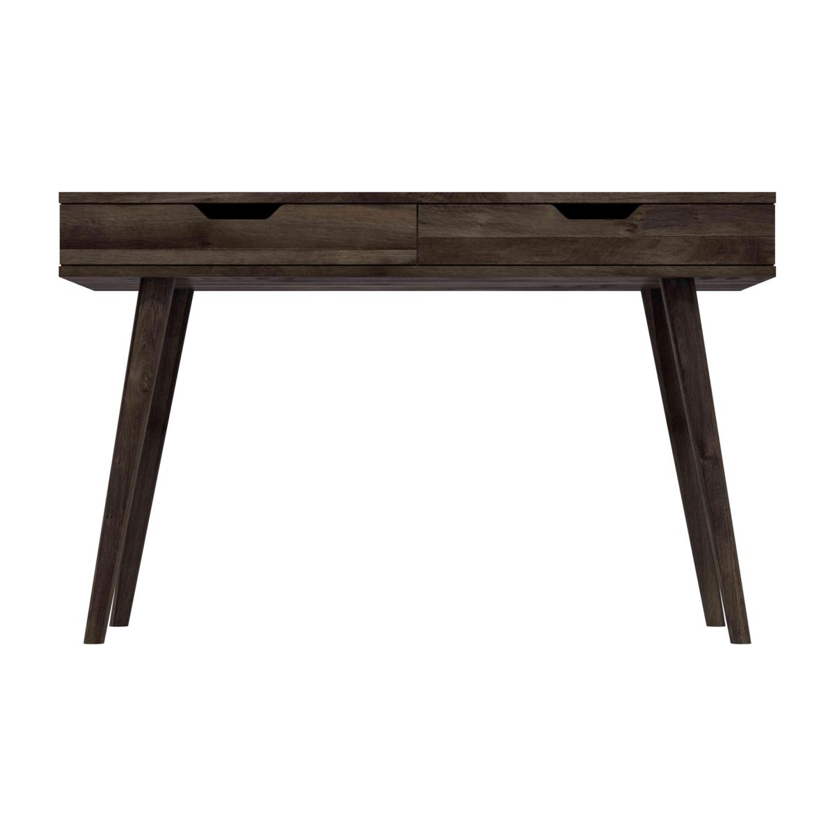 The London Bedrooms Finchley range makes it easy to create a stylish and coordinated bedroom. The look is so warm and welcoming – a contemporary, tactile woodgrain-effect finish that’s available in a choice of oak tones. And the details are equally well-considered. Pieces are extremely well-crafted with sturdy drawer bases, and showcase elegant angled legs, soft-closing doors and drawers, and simple metal handles. And with wardrobes and chests of drawers in all sizes from compact to large, this extensive furniture collection has something for every bedroom. The London Bedrooms Finchley range is made in London. Whether you work from home, need a place for stationery and a laptop, or want to create a quiet homework zone for the kids, this stylish contemporary desk makes it easy. Why you'll love it Simple and elegant, this on-trend desk has 2 useful drawers. Contemporary living room style with a warm, natural wood look. Beautiful woodgrain effect has a tactile textured finish. Soft-closing drawers with distinctive cut-out handles. In a choice of natural oak and dark oak. Made in London. A Furniture Village online exclusive. This desk is part of the Finchley range. What you need to know This finish may show surface scratches under certain lighting. Do not place in direct sunlight. Do not use abrasive cleaning products. Wipe clean with a damp cloth, and dry with a soft duster. We recommend using coasters and placemats at all times. Please note: This product comes fully assembled. Please ensure there is sufficient access for our delivery team.