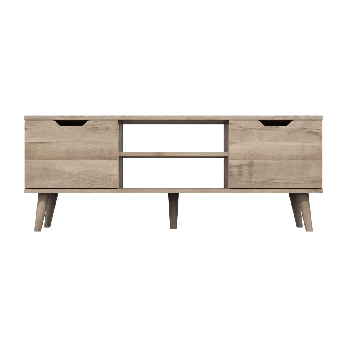 The London Bedrooms Finchley range makes it easy to create a stylish and coordinated bedroom. The look is so warm and welcoming – a contemporary, tactile woodgrain-effect finish that’s available in a choice of oak tones. And the details are equally well-considered. Pieces are extremely well-crafted with sturdy drawer bases, and showcase elegant angled legs, soft-closing doors and drawers, and simple metal handles. And with wardrobes and chests of drawers in all sizes from compact to large, this extensive furniture collection has something for every bedroom. The London Bedrooms Finchley range is made in London. With a spacious top for a large flatscreen TV, two cupboards and an open shelf, this media unit has all the storage you’ll need. Stylish contemporary woodgrain look. Why you'll love it Versatile media unit with plenty of open and closed storage. Contemporary living room style with a warm, natural wood look. Beautiful woodgrain effect has a tactile textured finish. Soft-closing cupboard doors with distinctive cut-out handles. Open alcove with shelf makes it easy to keep cables tidy. In a choice of natural oak and dark oak. Made in London. A Furniture Village online exclusive. This media unit is part of the Finchley range. What you need to know 2 cupboards each with 1 fixed shelf. We recommend using coasters and placemats at all times. Please note: This product comes fully assembled. Please ensure there is sufficient access for our delivery team.