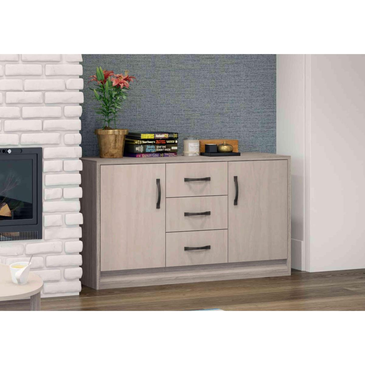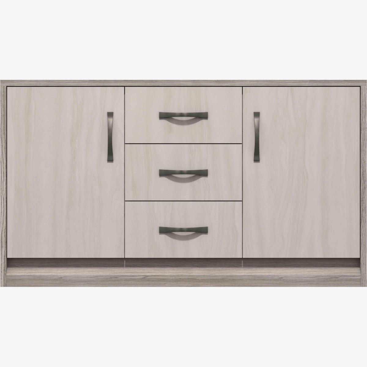 For versatile living and dining room furniture look no further than our Finsbury range, especially if you’re looking for on-trend style at a great-value price. This range’s finish is quite unique – a soft light grey that fits seamlessly into all decor styles with a great mix of oak- and stone-effect surfaces that work together so well. The range includes a choice of media units, sideboards and occasional tables so you can pick individual items to meet a special storage or display need, or combine them for a coordinated look. Sturdily built with soft-closing doors and drawers and fully assembled, the Finsbury range is yours at a very pleasing price. This large sideboard delivers everything we expect from our storage furniture – cool modern style, plenty of functional space and incredible value. What’s not to love?Why you'll love it Stylish, functional and priced to please – here’s your new large sideboard. On-trend contemporary design at a fantastic price. Striking grey oak- and stone-effect finish. Pewter handles complete the look. Soft-closing doors and drawers. Sturdily built with heavy-duty drawer bases. Made in the UK. Arrives fully assembled so you can enjoy it immediately. This large sideboard is part of our Finsbury range. What you need to know 3 drawers and 2 single-door cupboards each with a removable shelf. Please check dimensions carefully to ensure sufficient access for delivery. We recommend using coasters and placemats at all times. WARNING!