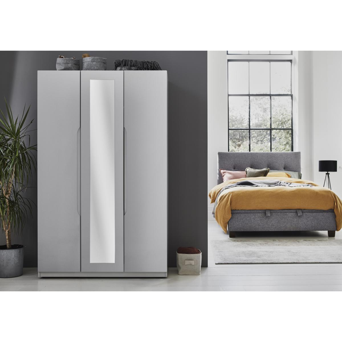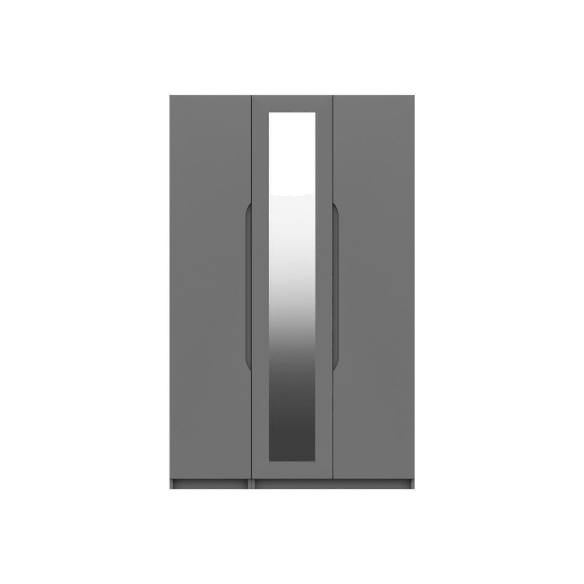 With its roomy interior and sleek finish, this stylish 3-door wardrobe with built-in mirror delivers storage with style. The high-gloss finish is light and bright – perfect for a smaller bedroom. Made in London. Why you'll love it. Sleek and stylish 3-door wardrobe with mirror has a beautiful high-gloss finish. Understated contemporary design. Large in scale for optimum storage. Middle door frames a handy full-length mirror. Gently curved recessed door pulls for a modern handleless silhouette. Doors are soft closing. Available in four sophisticated high-gloss colours. Assembled for you. Made with care in London. What you need to know. 3-door wardrobe has a hanging rail, 2 fixed shelves and 2 adjustable shelves. Please allow time for this wardrobe to settle into carpeted floors. This product comes assembled in sections, the largest of which is the size of a two-door wardrobe. To allow our delivery team to safely deliver this product to your chosen room and complete the assembly process, please make sure the route, stairways and doorways are big enough to allow access. The London Bedrooms St Pancras collection includes chests of drawers, bedside cabinets and more. Warning!. Furniture can tip over unexpectedly and cause injury. This item should be fixed to a wall using the anti-tip kit provided with the furniture. Be sure to use the correct wall fixings suitable for the walls in your home.