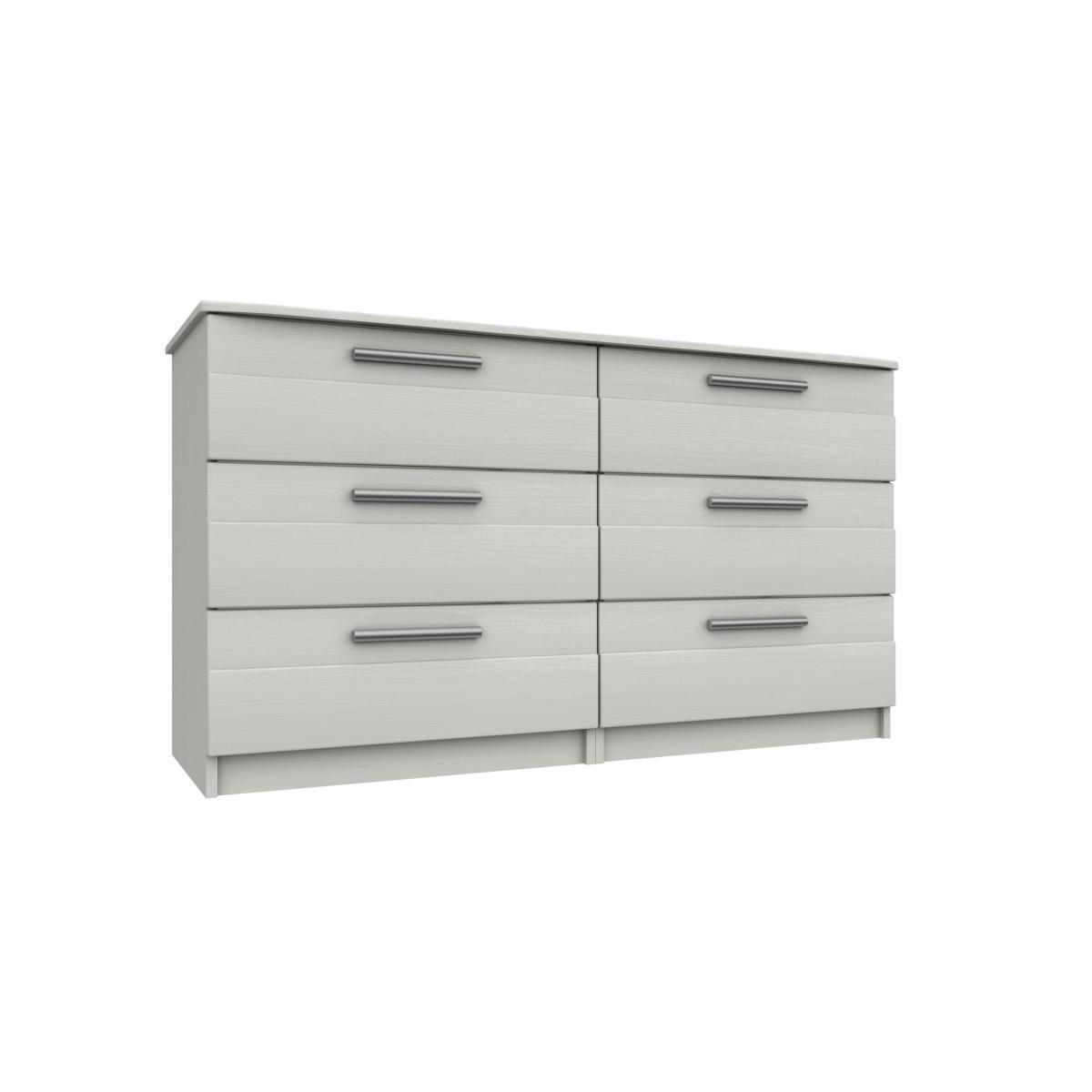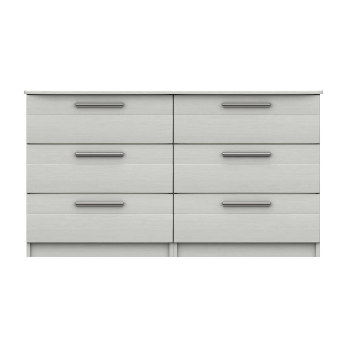 With two sets of three drawers, this chest of drawers provides excellent storage without overpowering a smaller bedroom. We love the classic-yet-contemporary tongue and groove-effect finish. Why you'll love it. Charming large chest of drawers offers a new take on traditional tongue and groove style. Generously proportioned contemporary design. Featuring two sets of 3 drawers, this chest is very roomy. Soft woodgrain-effect finish. Elegant linear metal handles with rounded edges. Drawers have extra-strong bases and soft-close mechanisms. Available in three colours – white, light grey and graphite. Fully assembled. Beautifully crafted in London. What you need to know. 6 equally sized drawers. Woodgrain effect appears on chest top and drawer fronts. Shop the London Bedrooms Victoria range for a wide choice of wardrobes and storage pieces. Warning!. Furniture can tip over unexpectedly and cause injury. This item should be fixed to a wall using the anti-tip kit provided with the furniture. Be sure to use the correct wall fixings suitable for the walls in your home.