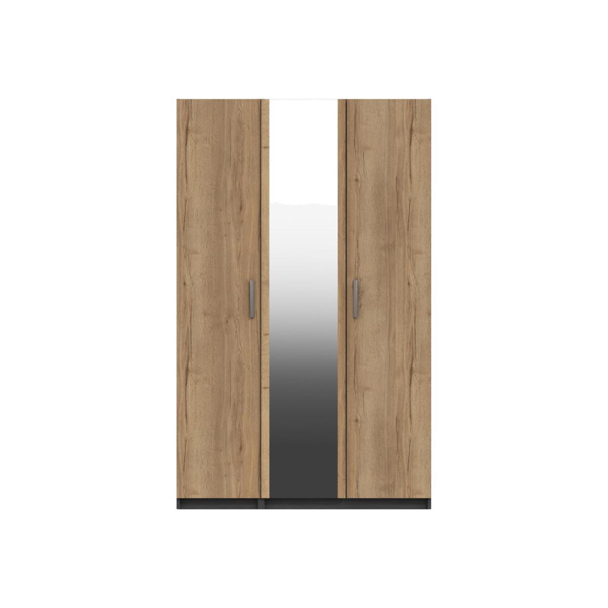 Spacious, stylish and packed with rustic cool, this modern triple- door wardrobe has plenty of room for all your clothes. And to make life even easier, we’ll assemble it for you. Why you'll love it Contemporary 3- door wardrobe showcases well- crafted rustic cool. Modern country style. Generous interior storage space. Textured woodgrain effect finish. Wardrobe doors have distinctive sloping profiles. Middle door features a useful full- length mirror. Stylish modern angled metal door handles. Doors have adjustable hinges. Available in four on- trend colourways including two- tone options. Assembled and installed for you. Made in London. A Furniture Village online exclusive. What you need to know 3- door wardrobe has a hanging rail, 2 adjustable shelves and 2 fixed shelves. Please allow time for this wardrobe to settle into carpeted floors. This product comes assembled in sections, the largest of which is the size of a two- door wardrobe. To allow our delivery team to safely deliver this product to your chosen room and complete the assembly process, please make sure the route, stairways and doorways are big enough to allow access. Shop the London Bedrooms Waterloo range for a wide choice of matching storage pieces. Warning! Furniture can tip over unexpectedly and cause injury. This item should be fixed to a wall using the anti- tip kit provided with the furniture. Be sure to use the correct wall fixings suitable for the walls in your home.
