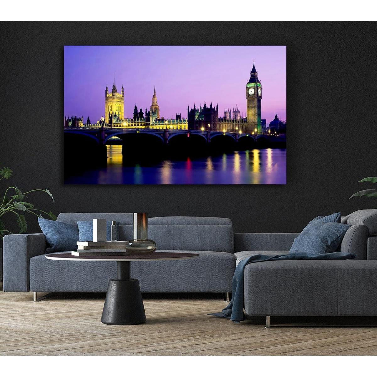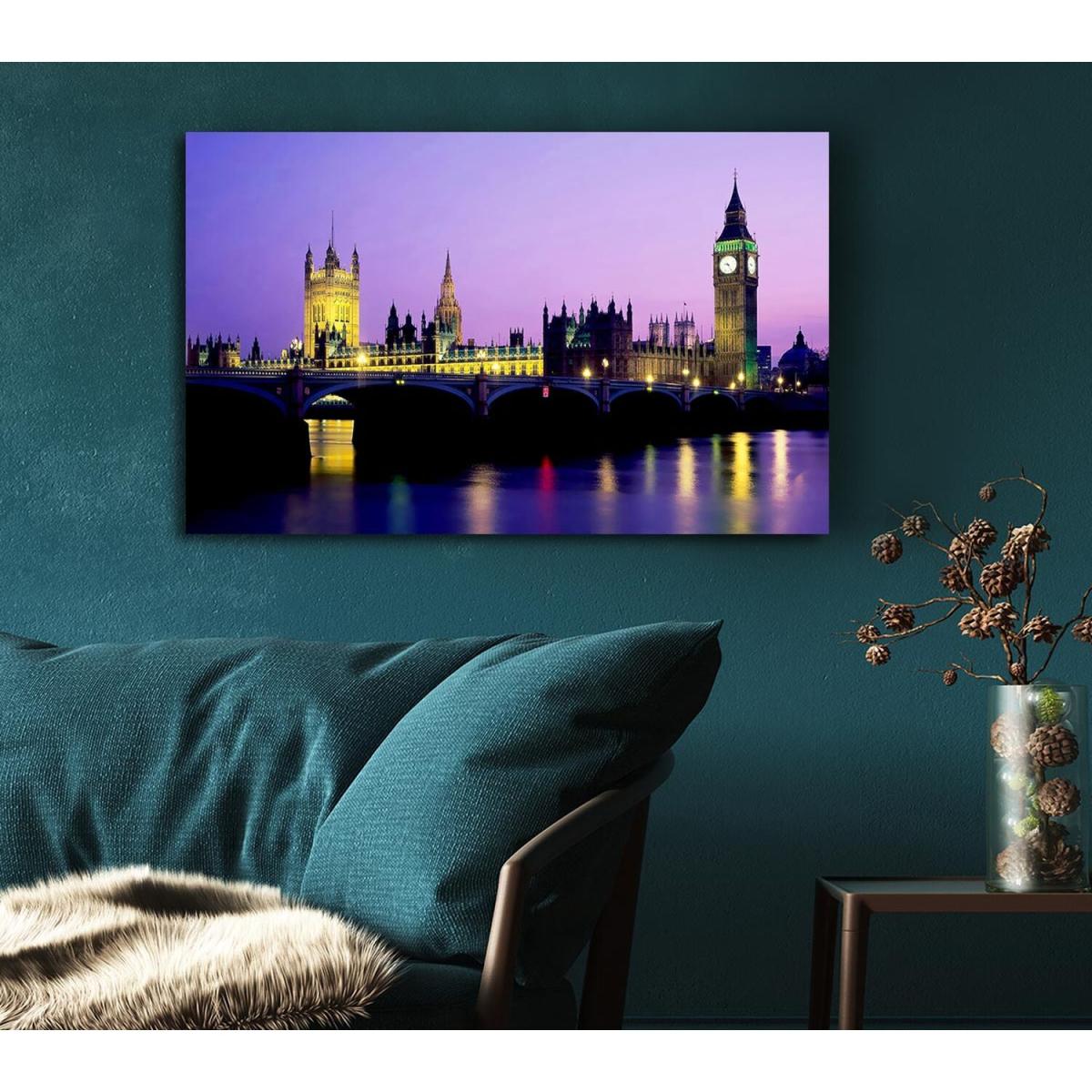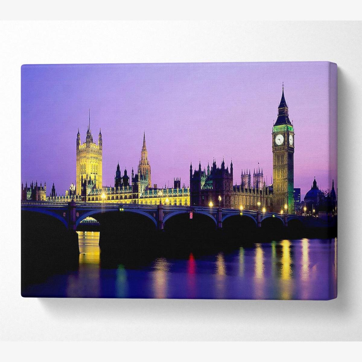 London Bridge City Lights Canvas Print Wall Art - Yellow / 101.6cm