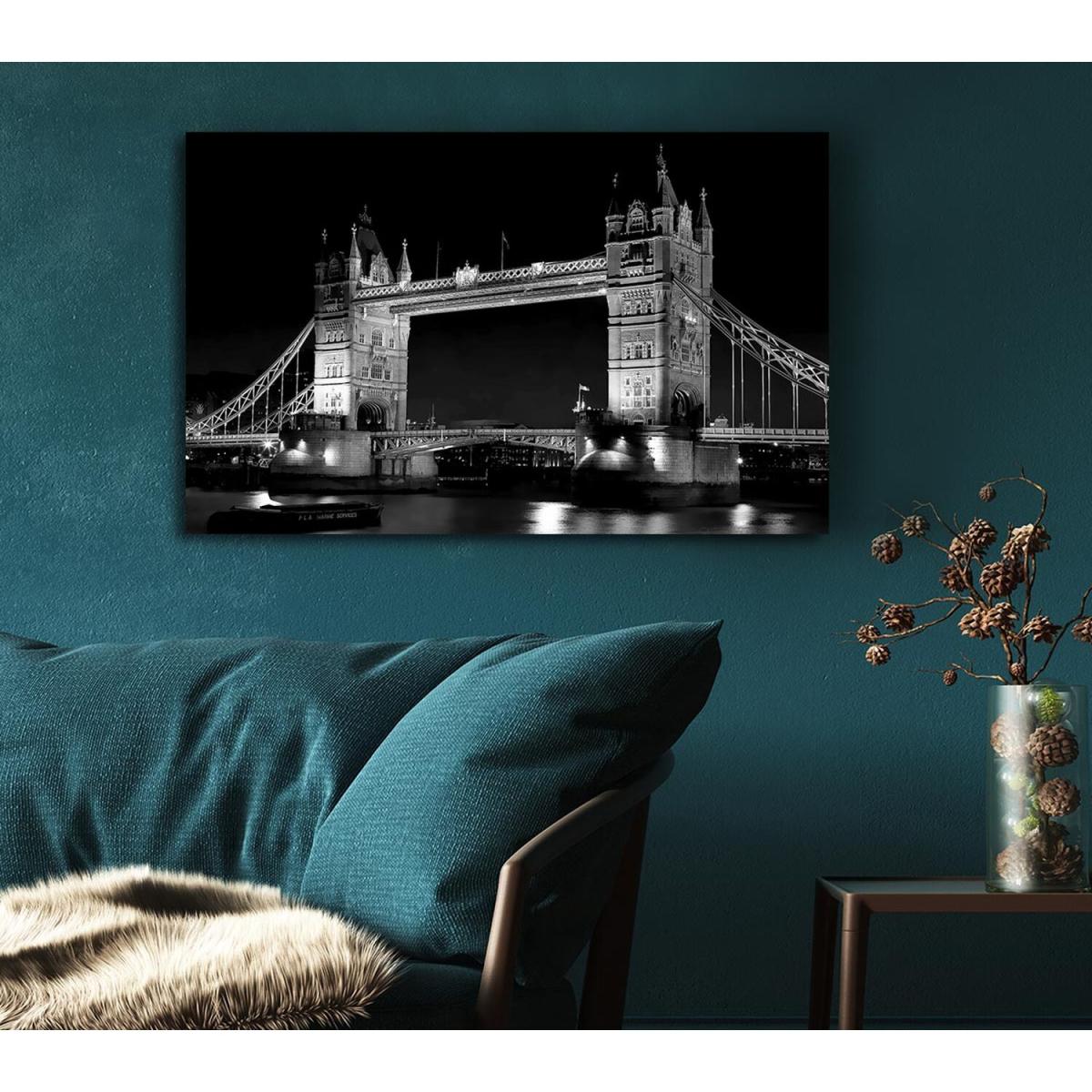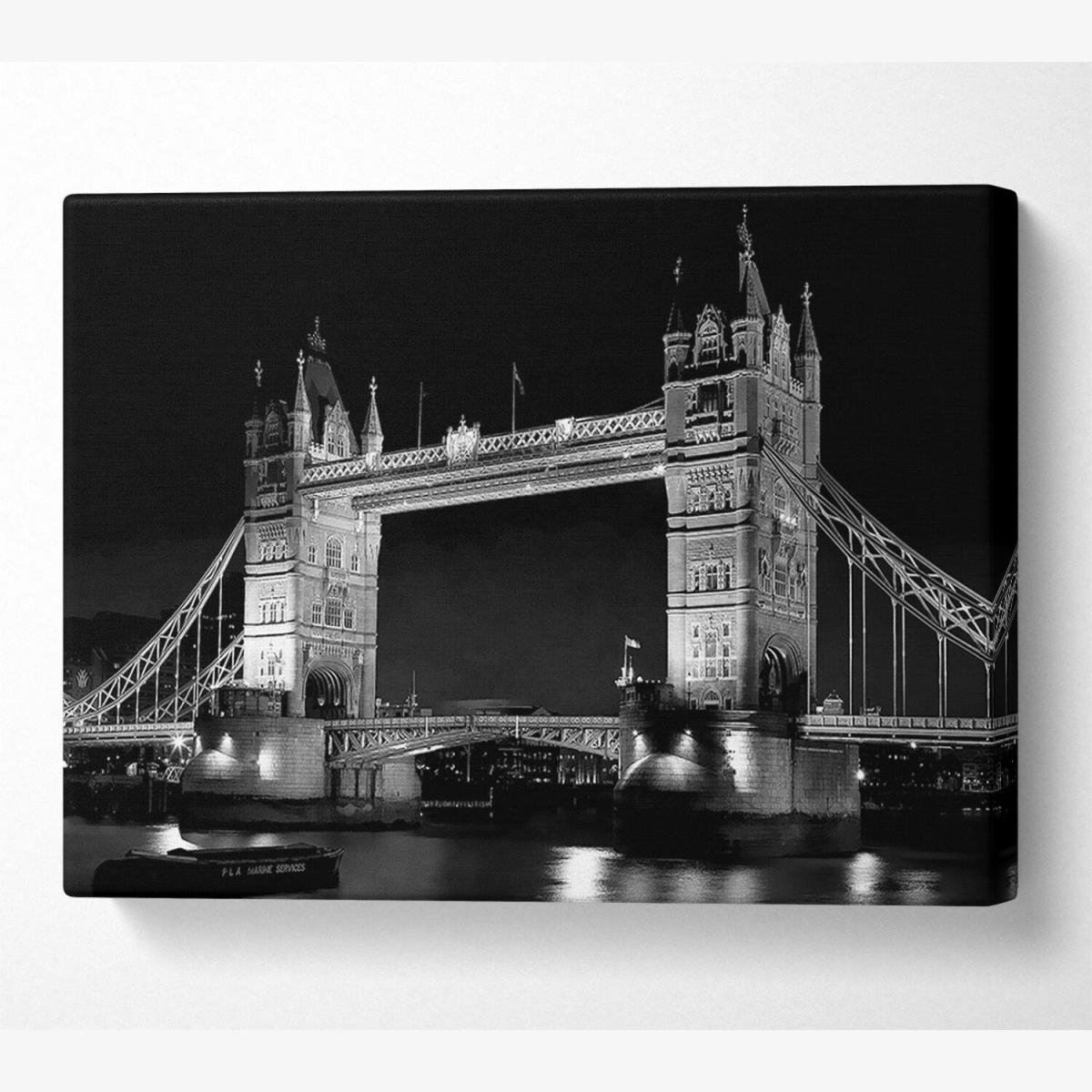 London Bridge Retro B n W Canvas Print Wall Art - Yellow / 66.04cm