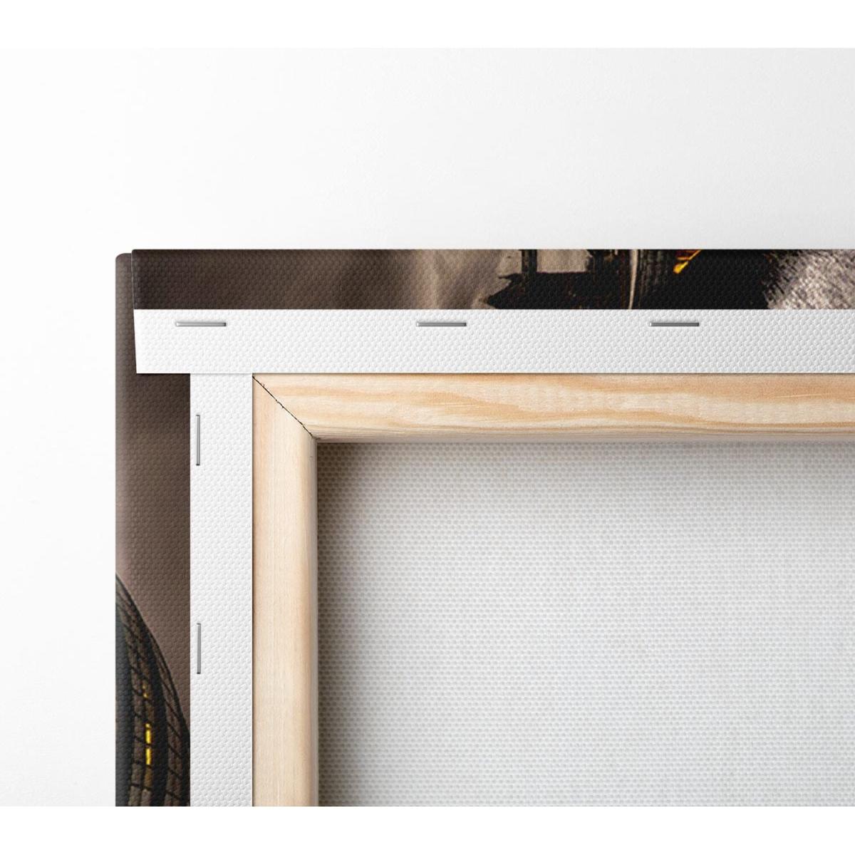 Canvas printed on coated polyester canvas. Mounted on to a 44mm box frame, ready to hang.