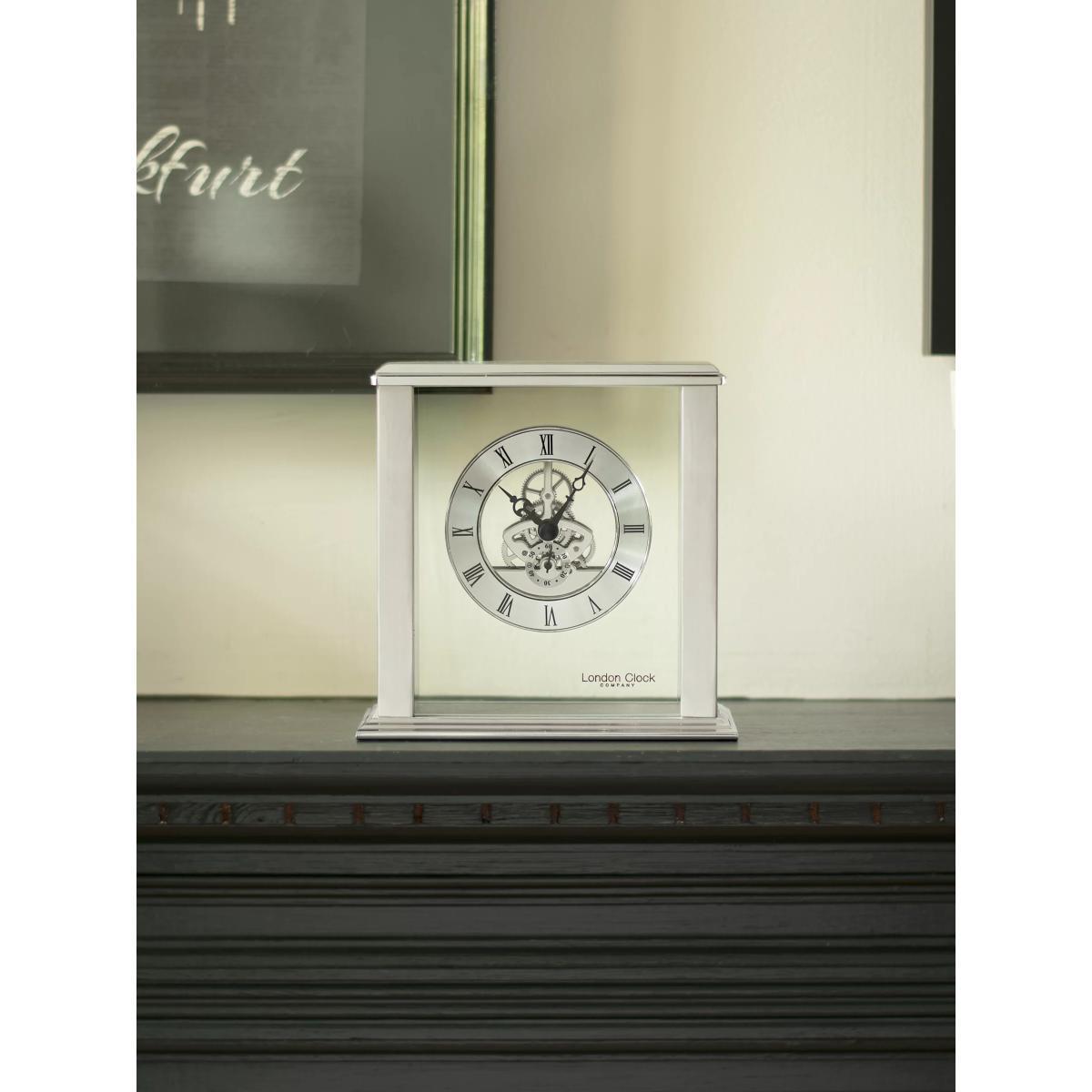 London Clock Company Roman Numeral Skeleton Mantel Clock, Brushed Chrome