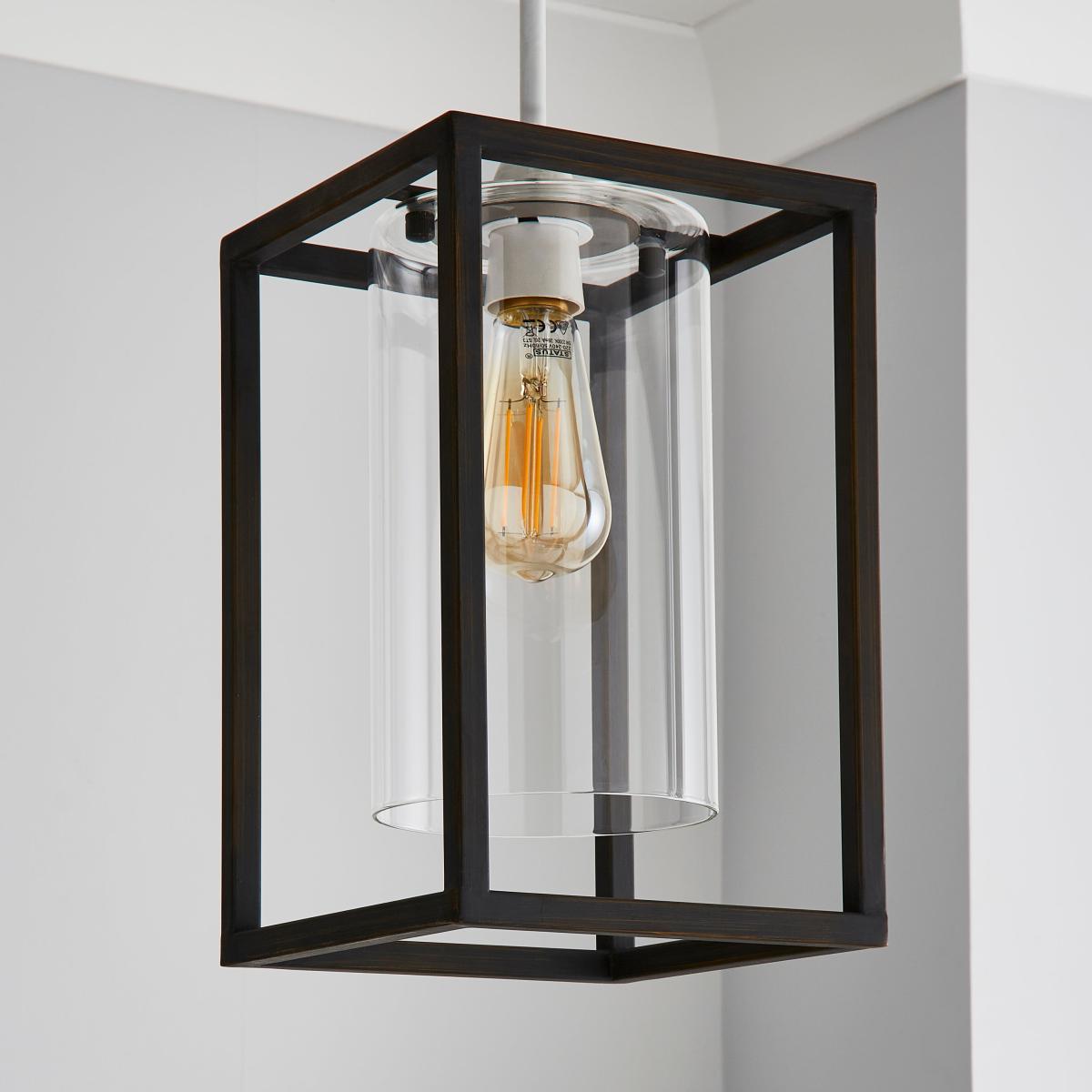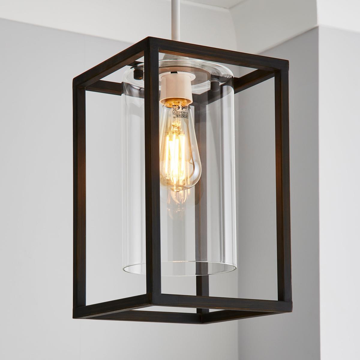 With a bronze painted finish frame, our London Easy Fit Pendant has a beautiful clear glass cylinder shade. Boasting an industrial design, this pendant is for ceiling fittings. Ideal for renters, this pendant is easy to fit! Coordinating family items are available within the London range.