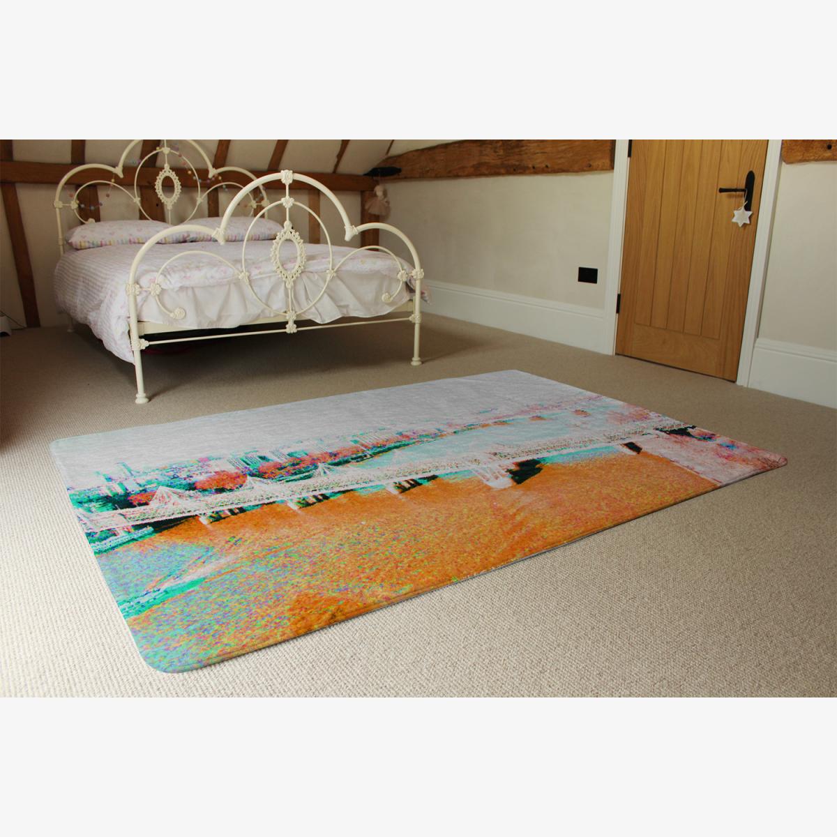 I love this bright orange rug for injecting a pop of colour into a neutral or understated space. Its vibrant hue makes it ideal for contemporary interiors, especially in living rooms or bedrooms where you want to create a cheerful focal point. Pair it with muted furnishings to let the rug stand out or coordinate with other warm tones for a cohesive look. My practical tip would be to balance the bold colour with simple, clean-lined furniture and to add some textured cushions or throws in complementary shades. Its size makes it versatile-perfect for defining a seating area or adding warmth to larger rooms without overwhelming the space.