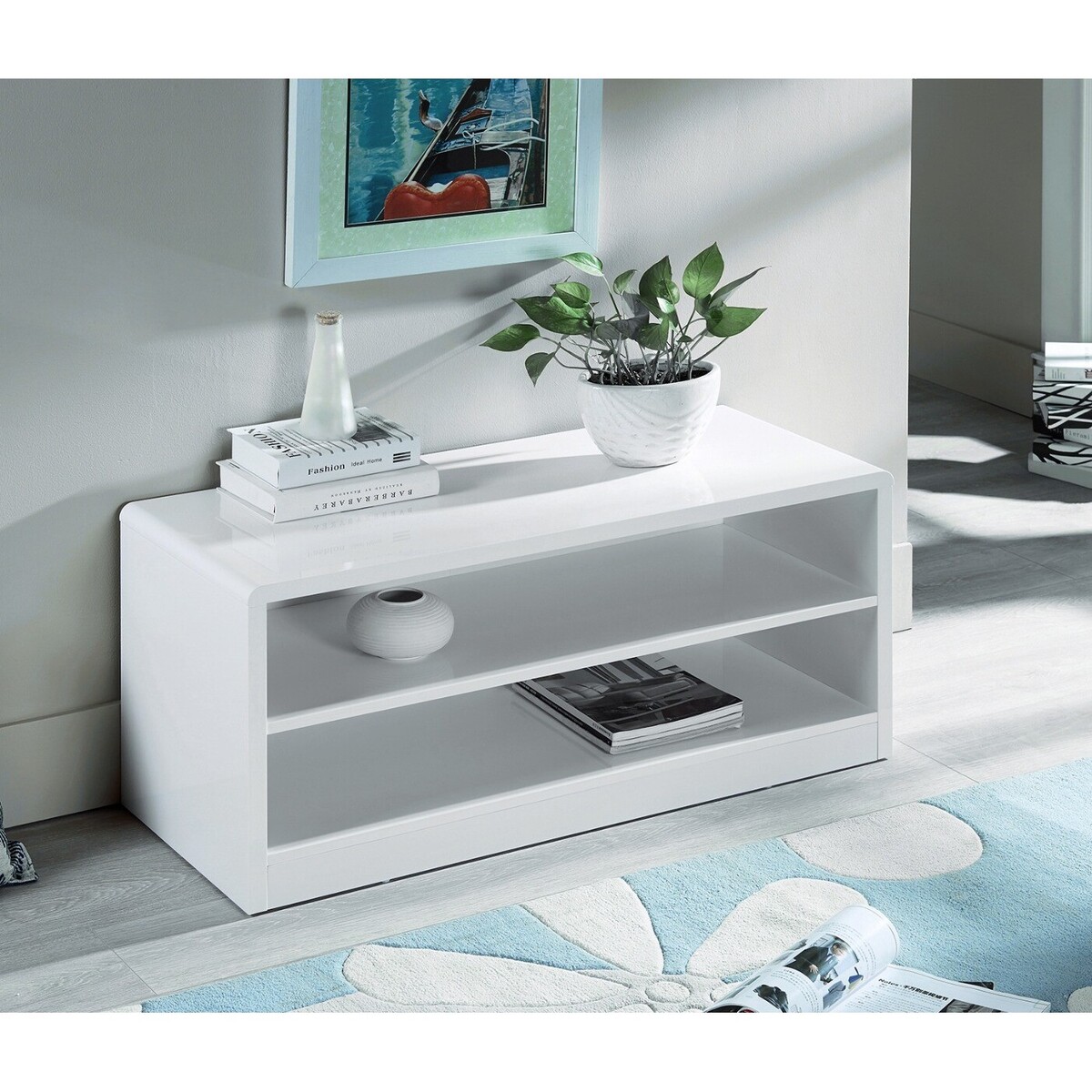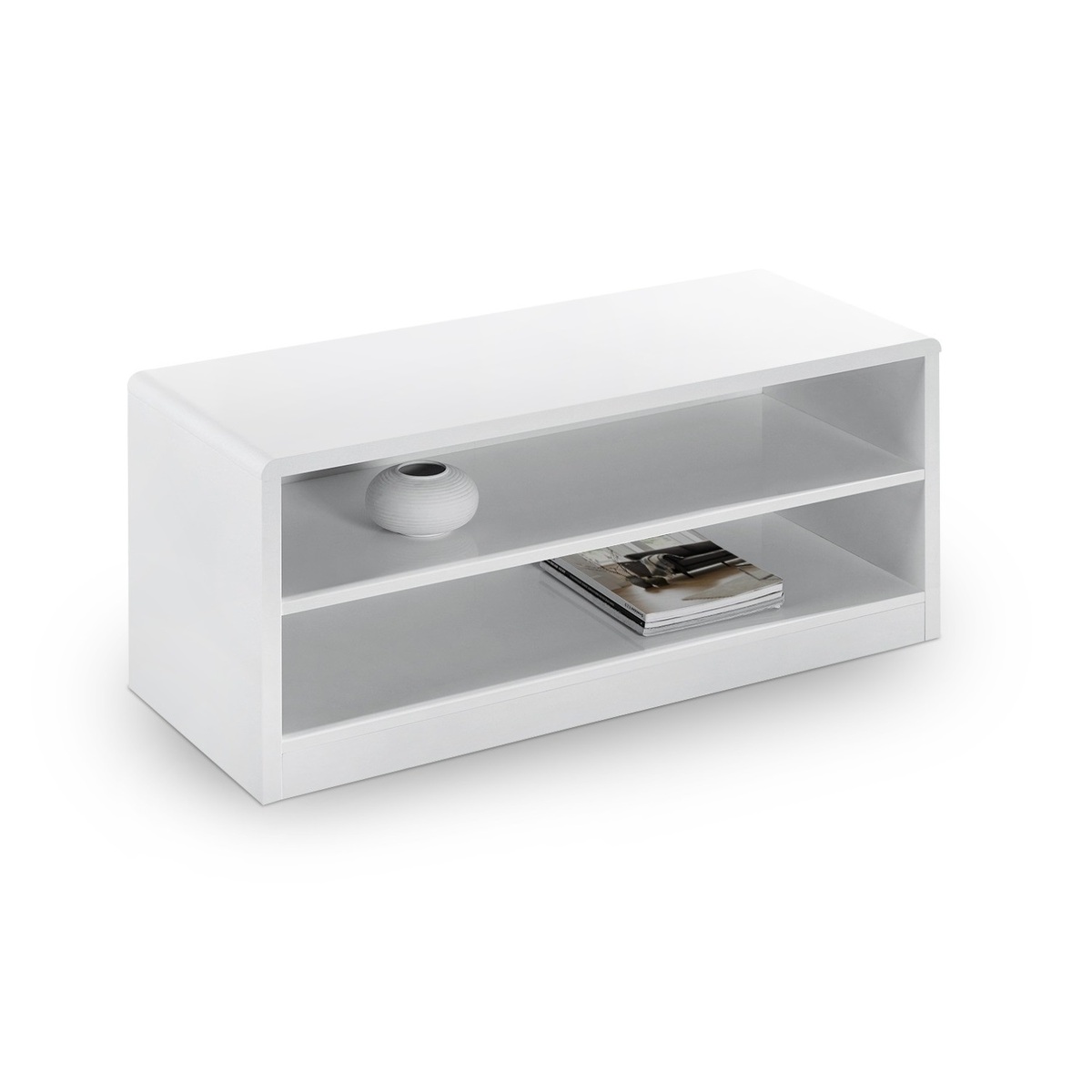 The London Compact TV Unit is a highly modern addition to any living space. Providing functional storage for your television, the unit's modern profile is ideal for many styles of home. A high gloss white lacquered finish ensures it has a premium feel and it incorporates functional shelving for media devices and consoles. Sturdy MDF construction. High gloss white lacquered finish. Store media devices and consoles on two shelves. Space saving design suits compact homes and smaller rooms.