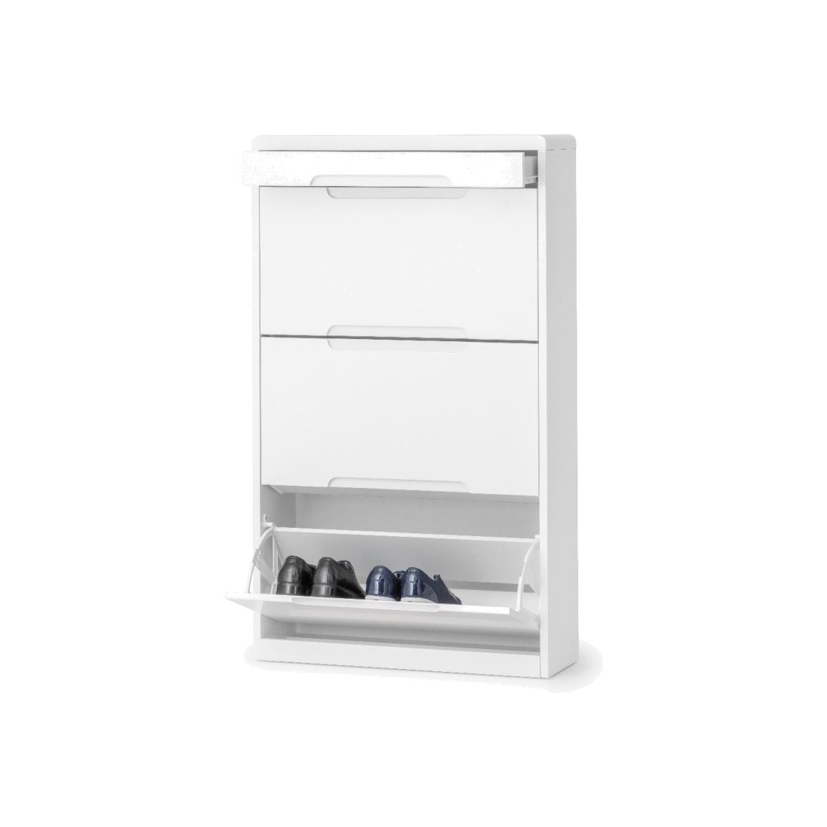 The London Shoe Cabinet is a highly practical addition to any home, which also has a classy and stylish appearance. The ultra-chic high gloss lacquered finish makes it an elegant and premium design, which also has a real practical function in the bedroom. Slim design works in rooms of all sizes Minimalist recessed handles add a design feature Three large shoe storage compartments with additional drawer storage High gloss white lacquer provides a stunning finish