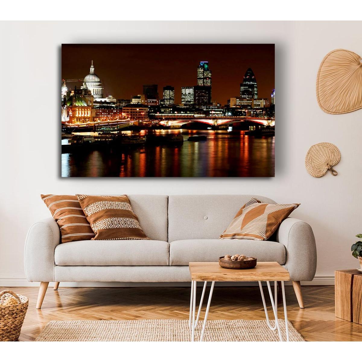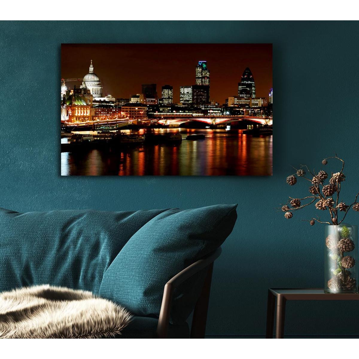 I really like this London Thames Night Lights canvas as it brings a vibrant yet sophisticated touch to various interiors. Its bold colours make it perfect for contemporary or industrial-style spaces, especially in living rooms or offices where a statement piece is desired. It works well paired with neutral tones to let the yellows and cityscape pop, or alongside darker shades for a more dramatic feel. Practical styling tips include hanging it at eye level above sofas or sideboards to maximise impact, and keeping surrounding décor minimal to let the artwork stand out. It’s an excellent way to introduce an urban vibe while adding warmth and colour to the decor.